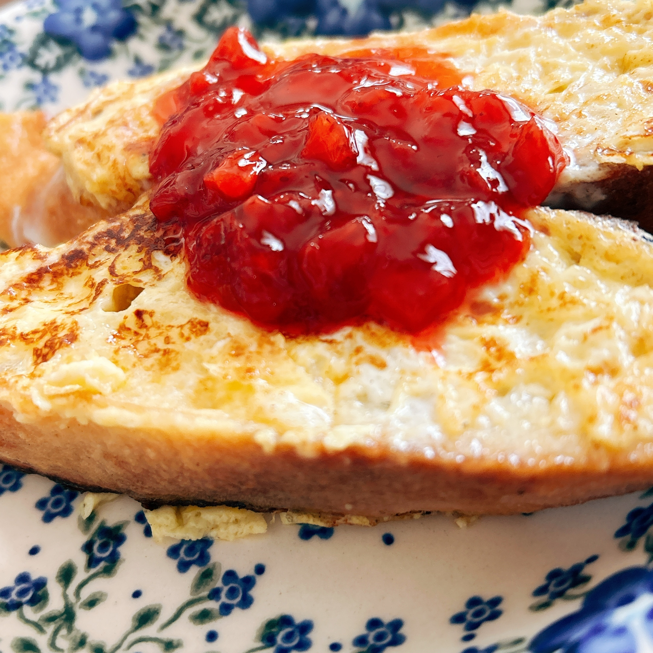 その時におすすめしていただいたバゲット🥖でフレンチトーストを作り、またストロベリーベース🍓をかけました❤️