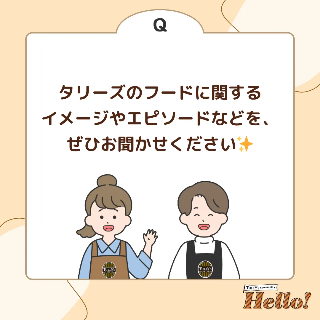 皆さんの思い描くタリーズのフード像や好きなメニューを、理由やエピソードなどと合わせて教えていただきたいです🙏