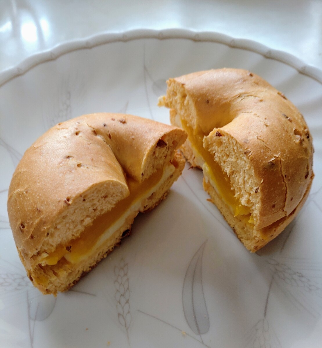 んで、ようやく冷凍庫から出してあげられましたよ、『ベーグルサンド パンプキン&クリームチーズ』