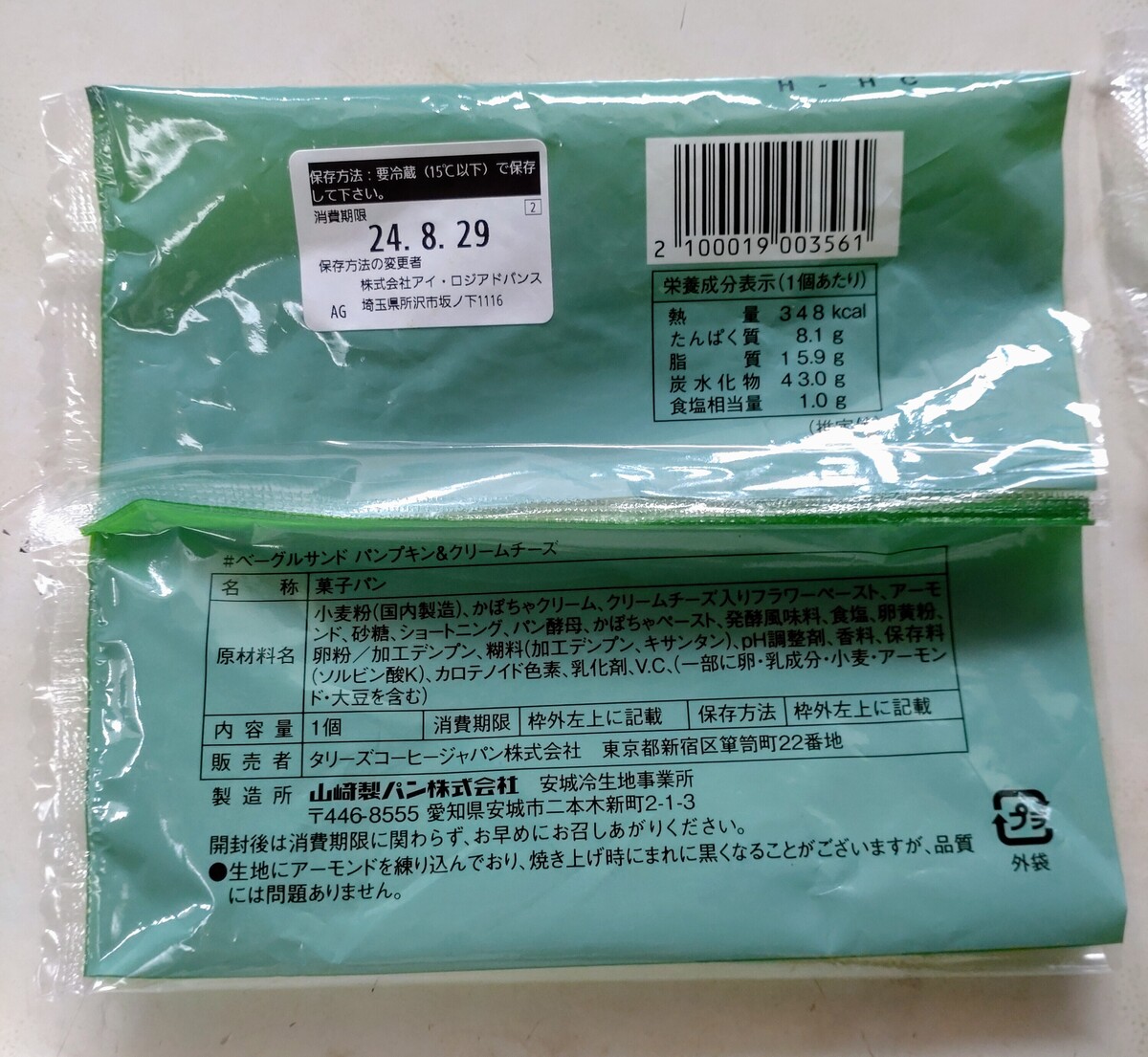 パッケージの色はどんな基準なのか気になり始めました。パンプキンならオレンジ?でも、ベーグルの色と同色なので対象の緑を選んだのかな?・・