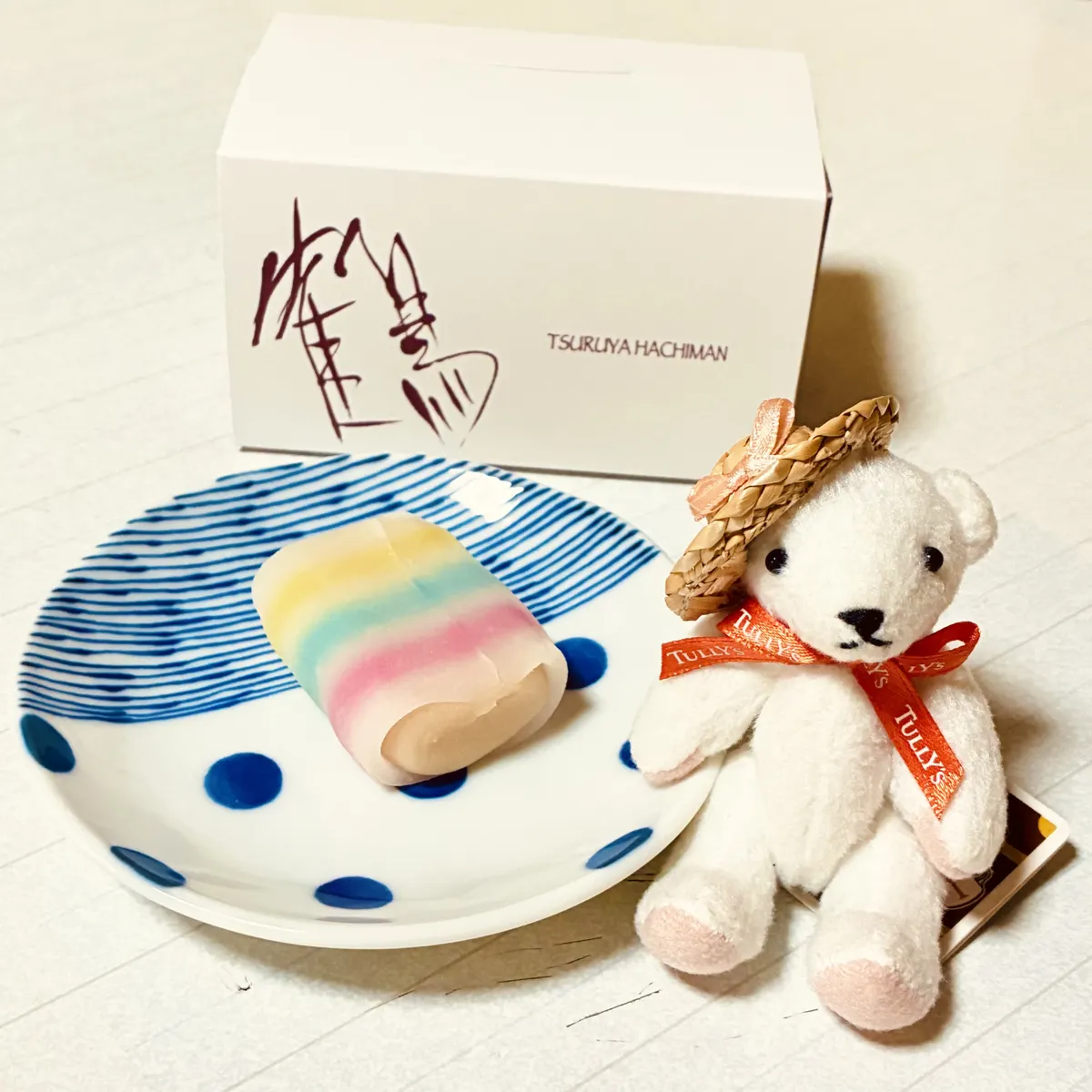 麦わらちゃん連れていったのに出すの忘れたので、自宅で京菓子の鶴屋八幡さんの🎋七夕限定の和菓子《願の糸》と一緒に♪