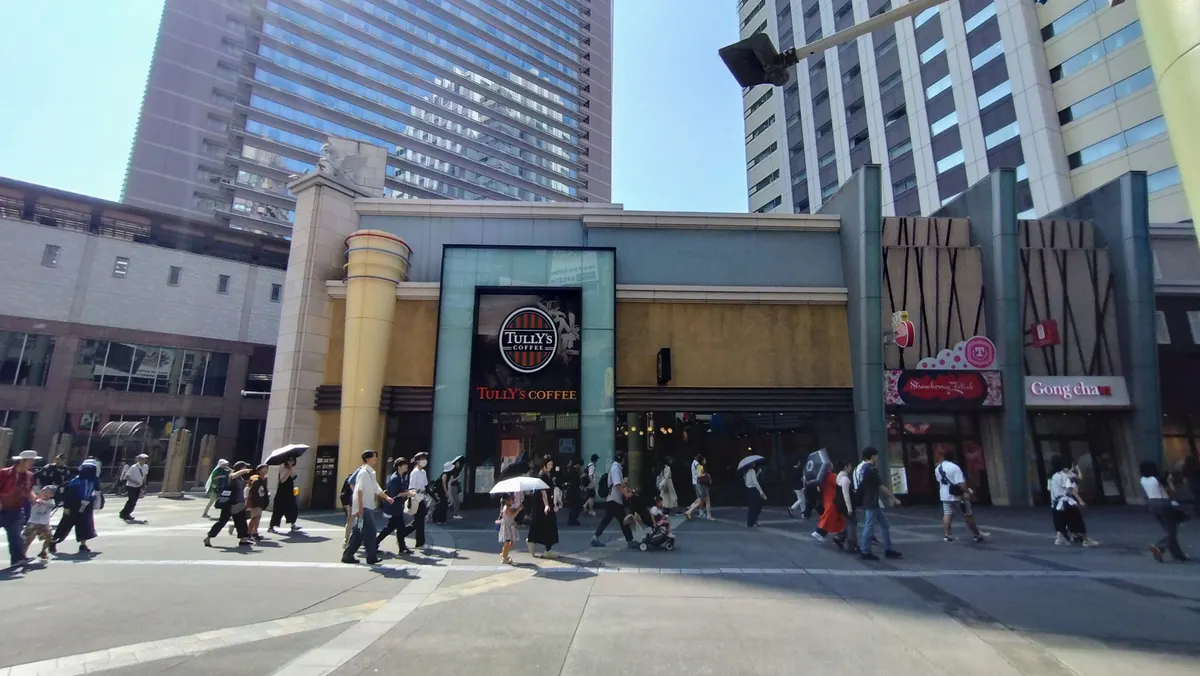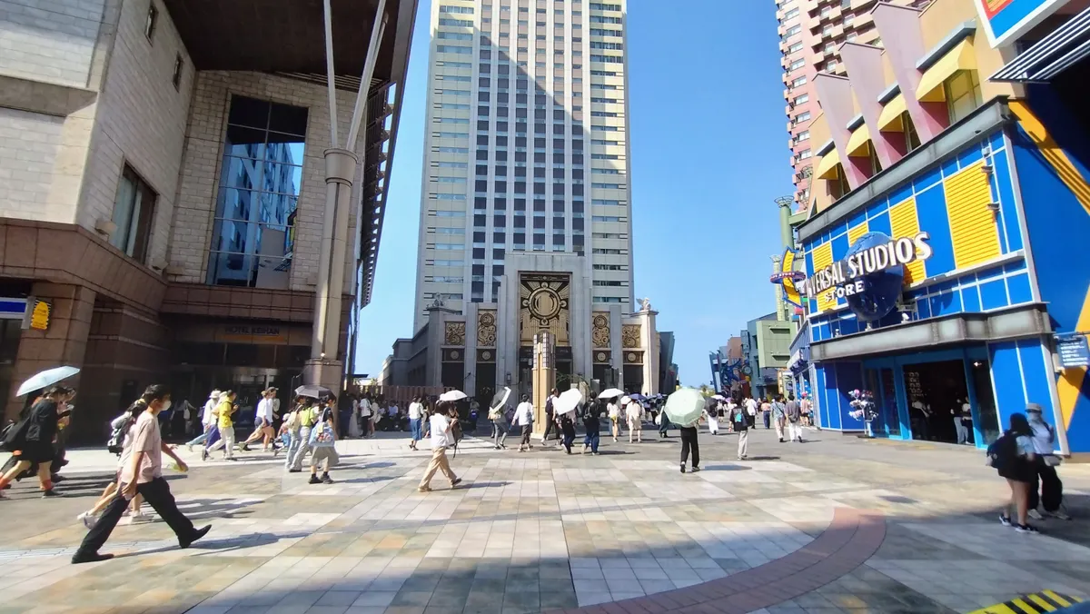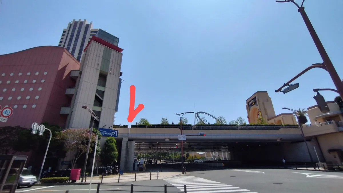 ユニバーサルシティウォークは大きな人工地盤の上にあります(ビルの3F相当の高さ)。
