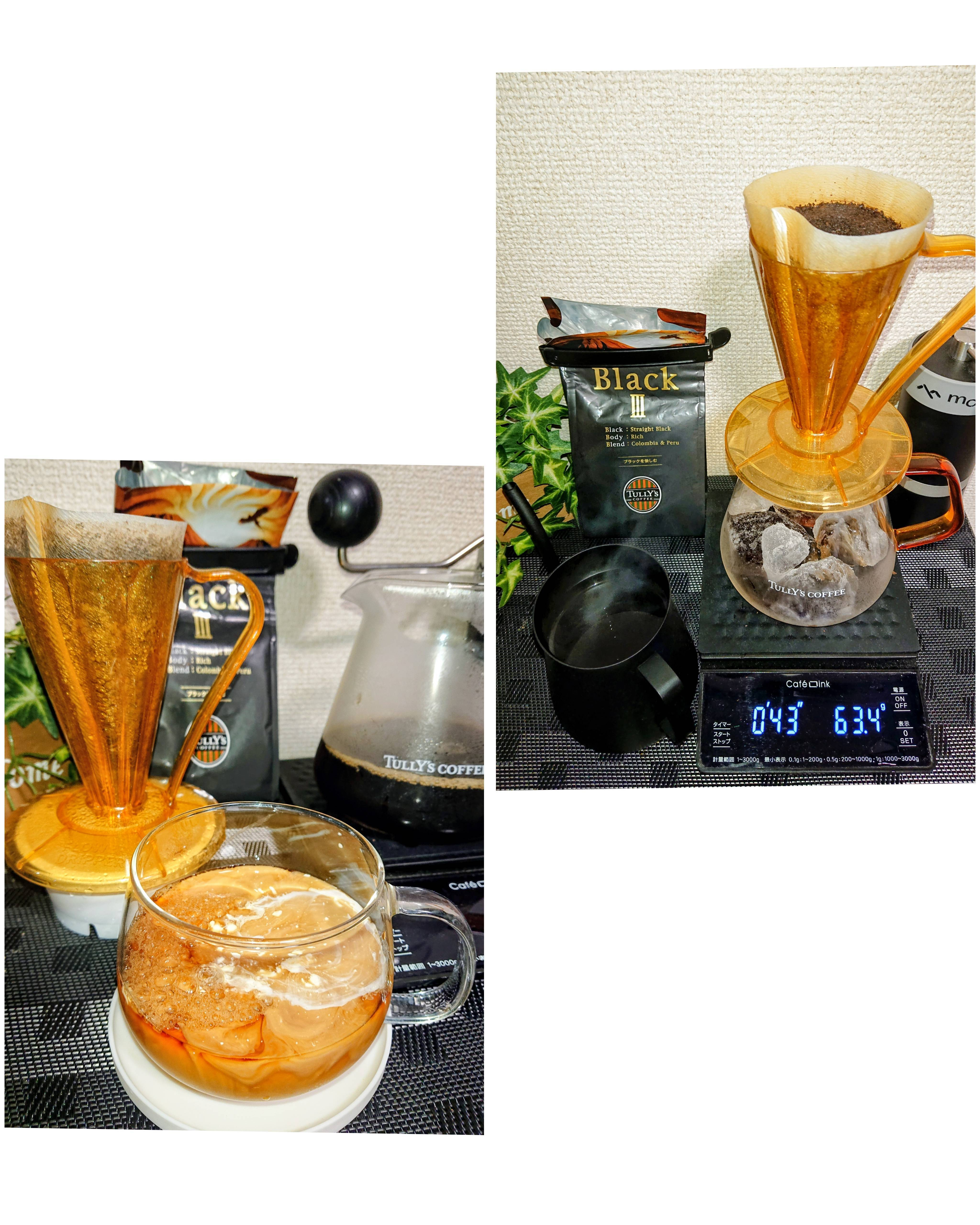 Black3豆を使い、急冷式でアイス珈琲を淹れて、生クリームを浮かべて飲んでおります♪😆👍❤️