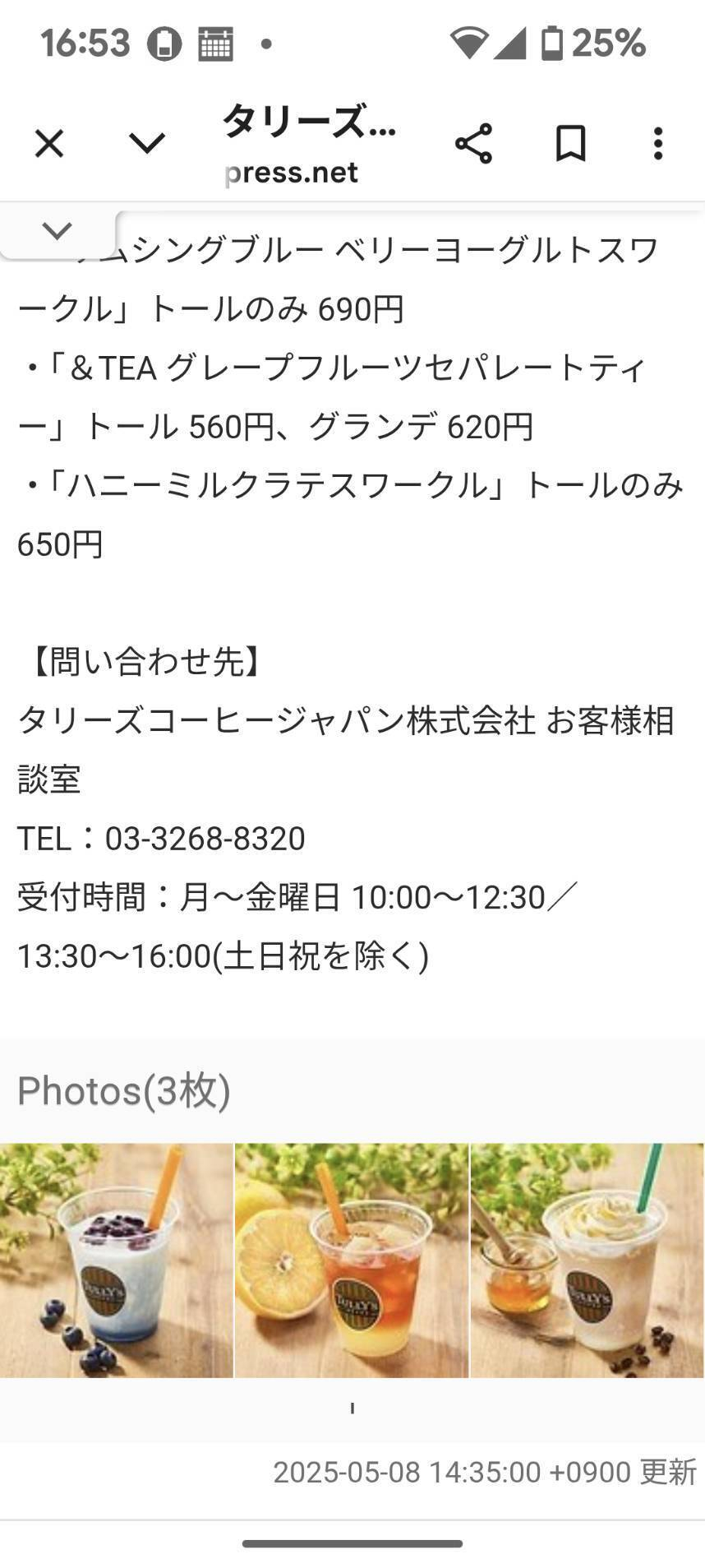 トップ > なんでも写真館 > 来週から ジャスミン 2025/05/08 17:02 来週から 美味しそうなドリンク3つも🍹🍹🍹𓈒𓂂𓏸 大~変っ😊来週からたくさんTully's行かなくっちゃ 1番 &TEAグレープフルーツセパレートティー 2番 サムシングブルーベリーヨーグルトスワークル 3番 ハニーミルクラテスワークル の順で飲もうかなぁ いいね 共有する 共有する X facebook LINE リンクをコピー コメントする 3 件の返信 (新着順) ミュートしたユーザーの投稿です。 投稿を表示 しお 2025/05/08 20:38 セパレートティーが気になります✨ でも,どれも美味しそうー😆 いいね 返信する ミュートしたユーザーの投稿です。 投稿を表示 ジャスミン 2025/05/08 21:40 しお このセパレート、綺麗な色合いですよね🍹 黄色の上に茶色💛🤎 ・::・(˘︶˘).。♡・:*:・ いいね 返信する ミュートしたユーザーの投稿です。 投稿を表示 みさと 2025/05/08 20:18 わーもう新しいドリンクなんですね! セパレートティー来ると、夏って感じがします☀️✨ いいね 返信する ミュートしたユーザーの投稿です。 投稿を表示 ジャスミン 2025/05/08 21:48 みさと 確かに‼️サマーですね⭐️🌻✨️✨️🌻⭐️ 楽しみですね🍹 いいね 返信する ミュートしたユーザーの投稿です。 投稿を表示 matusko 2025/05/08 18:13 お知らせ📢見ました~(≧▽≦) みんな美味しそうですね~ フードとスイーツもありますよ! 楽しみですね~😃💕 いいね 返信する ミュートしたユーザーの投稿です。 投稿を表示 ジャスミン 2025/05/08 22:07 matusko フードとスイーツもなんですね ( ˶>ᴗ<˶) 画像🆙ありがとうございます ドリンクとフード・スイーツどの組み合わせでいただこうかな🥪🍋🍪 いいね 返信する