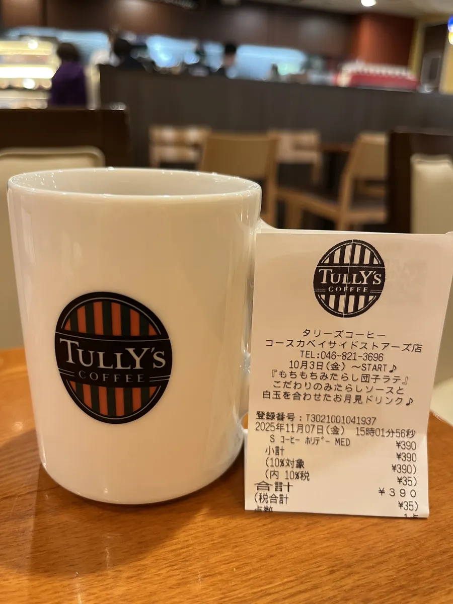 投稿を表示田舎から甥っ子が遊びに来て軍港めぐりに連れて行った時に、コースカのタリーズ、ノーマルの方に行きました😊
