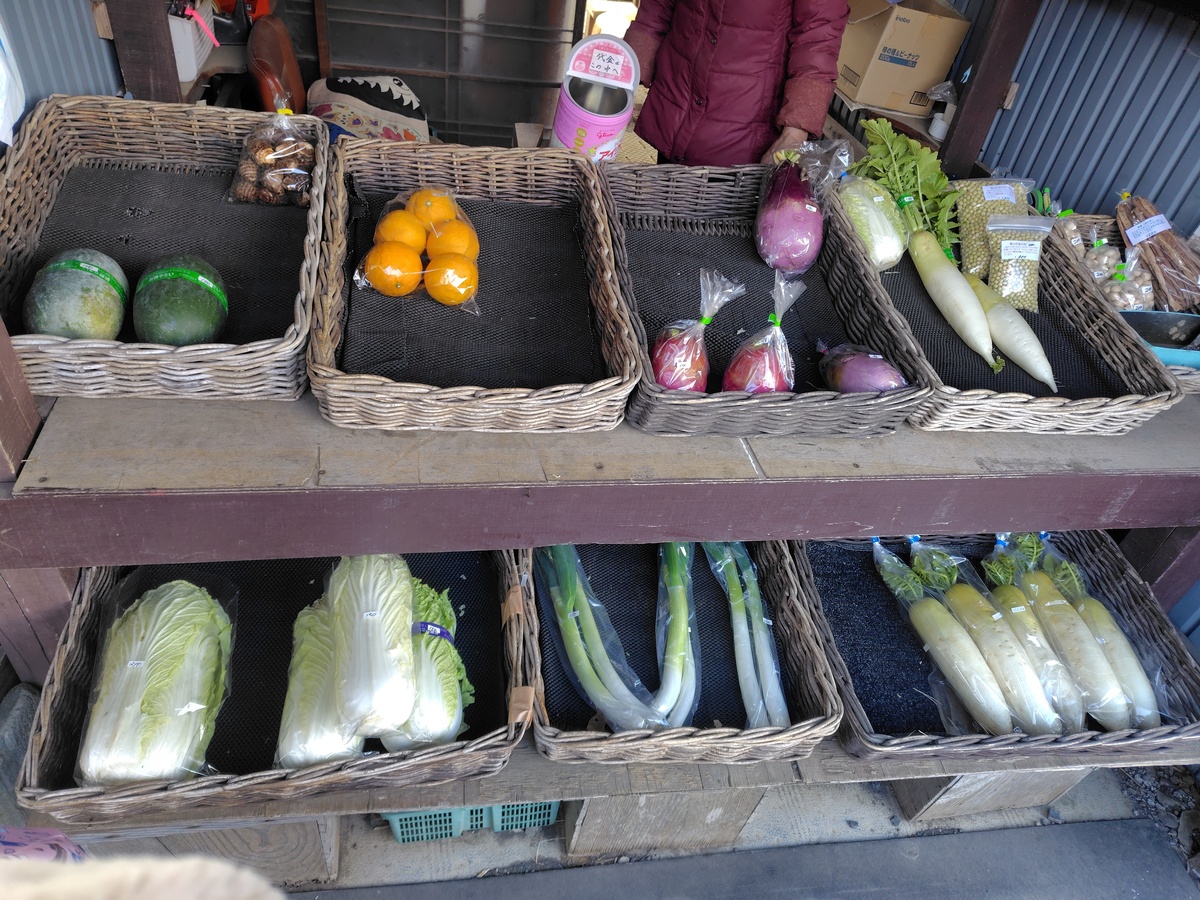 滝を後にし、氣になっていた午前中で売り切れてしまうという有機野菜無人販売所へ。