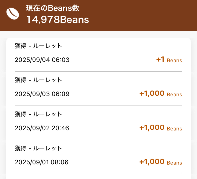 私は6月に4回出てから7、8月と今日まで2ヶ月1000豆当たりませんね🥲