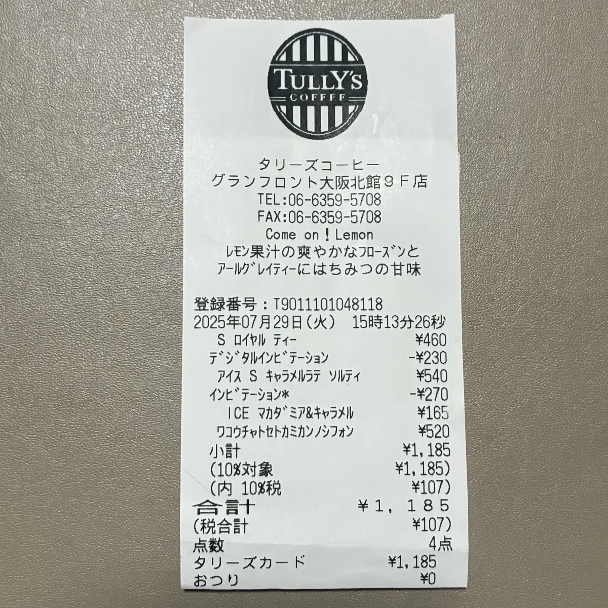 『本日のタリーズ』だけど、昨日のタリーズです 笑