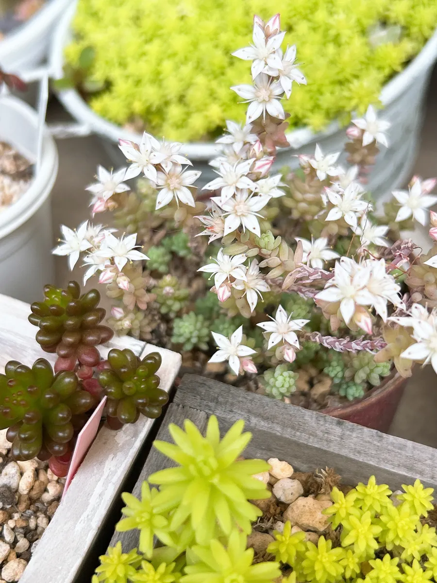 この頃、なかなか多肉作業ができてなかったのですが、セダムのお花が咲きまくってました(^^)