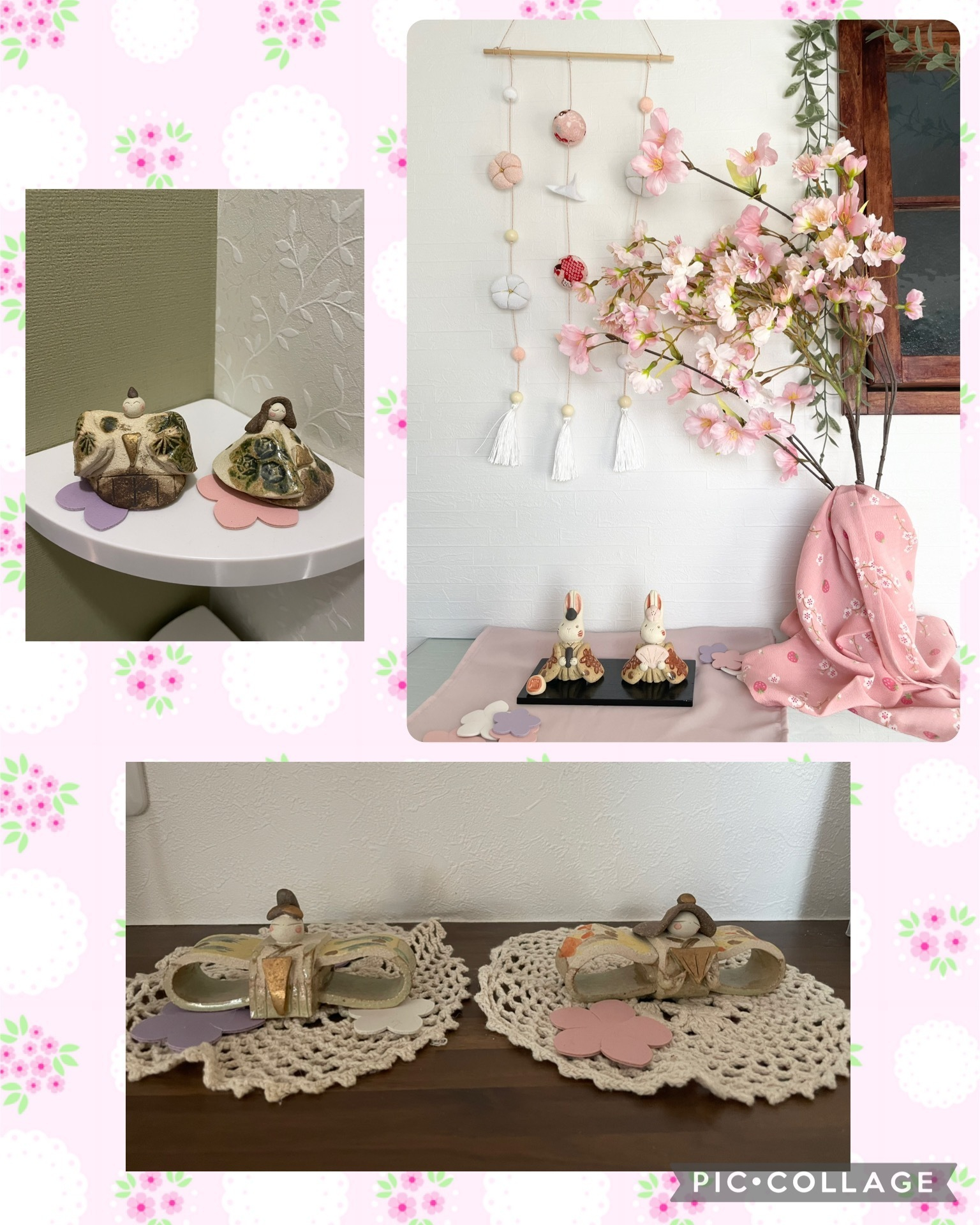まゆ🧸さんちには愛らしい🎎が三組もあるのですね。ピンク色の効果(フェルトのお花や花入の掛け布)参考になりました。