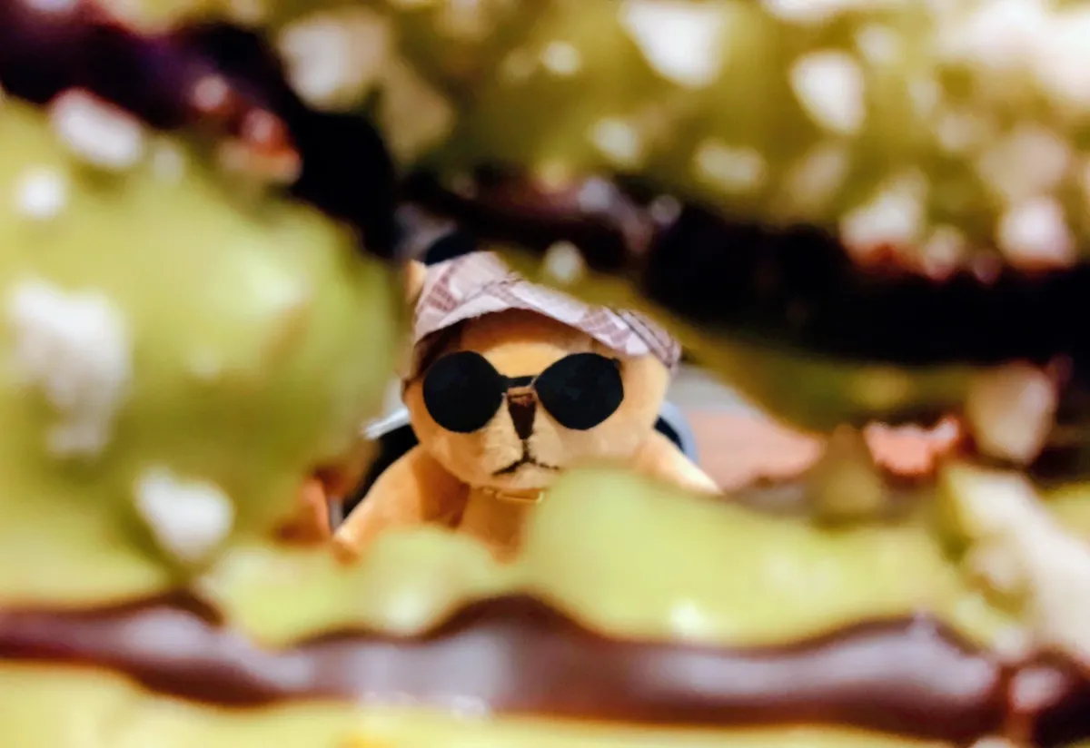 穴ごしに撮影しようとするんですが、ドーナツを刺したフォークが微妙に動いたりベアフルになかなかピントが合わなかったりで苦労しました😅