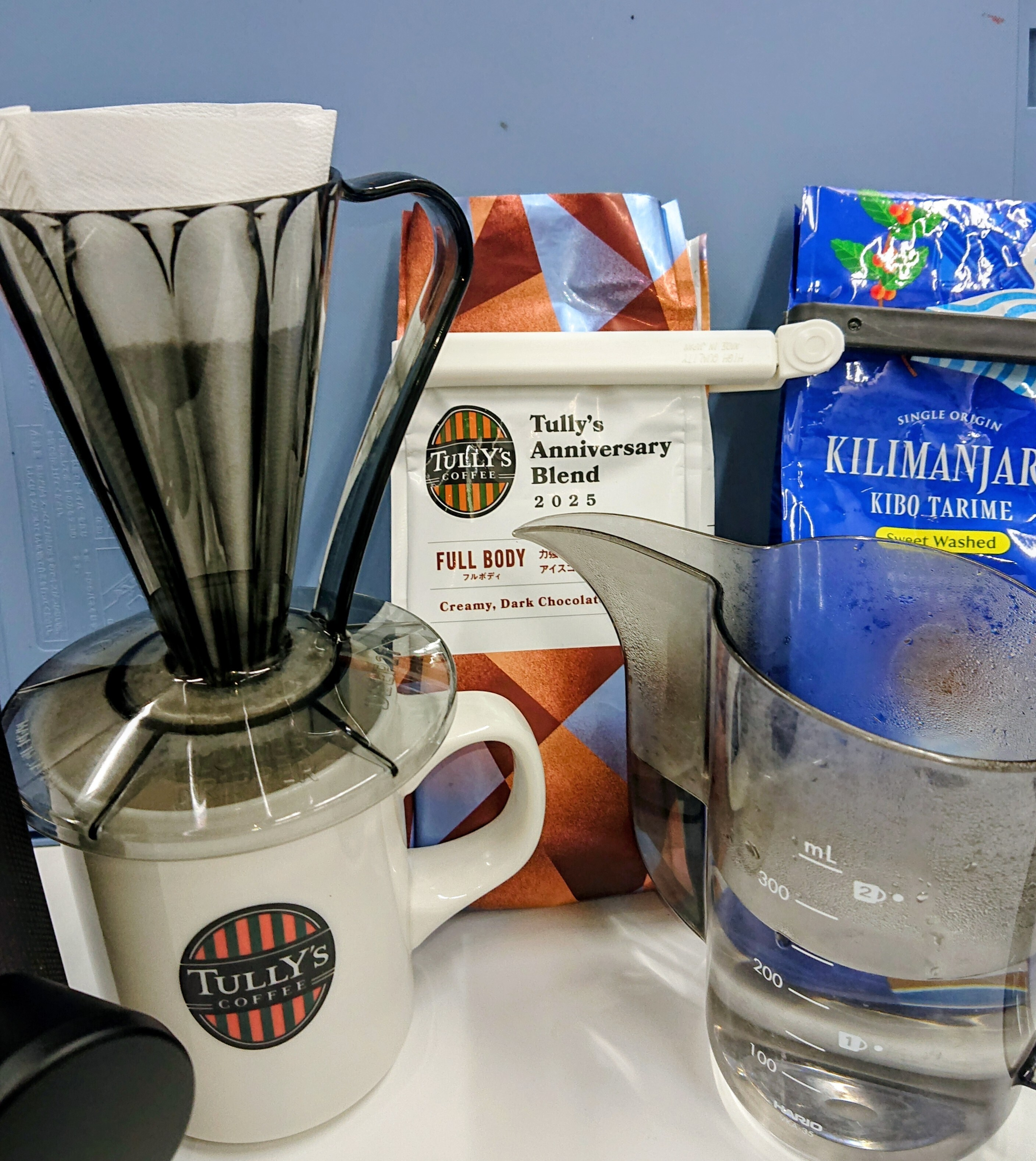 今日の休憩時間は、アニバーサリーブレンド(FDY)とキリマンジャロ(WSD)の2:1ブレンドにしましたぁ♪😁✨✨