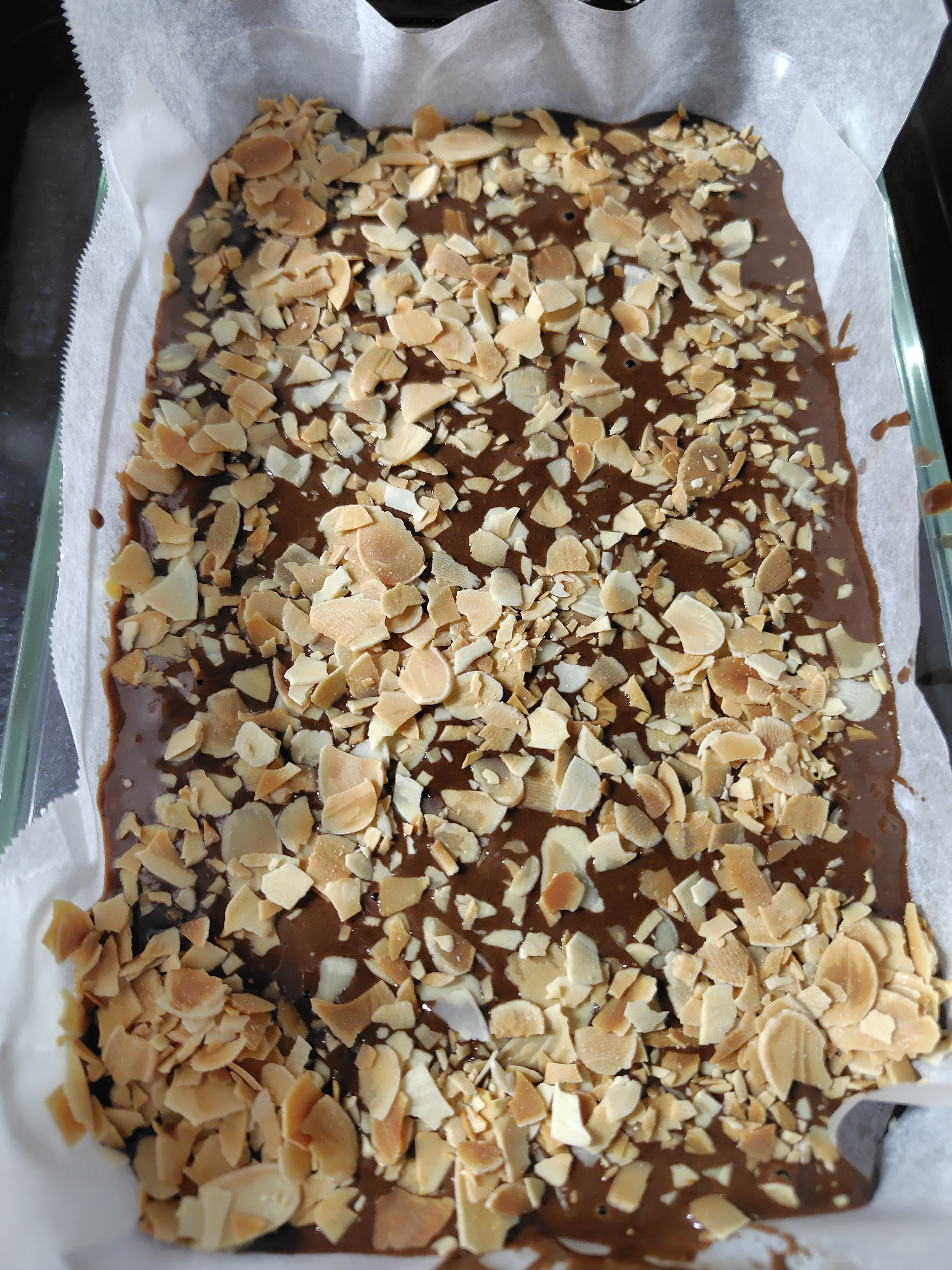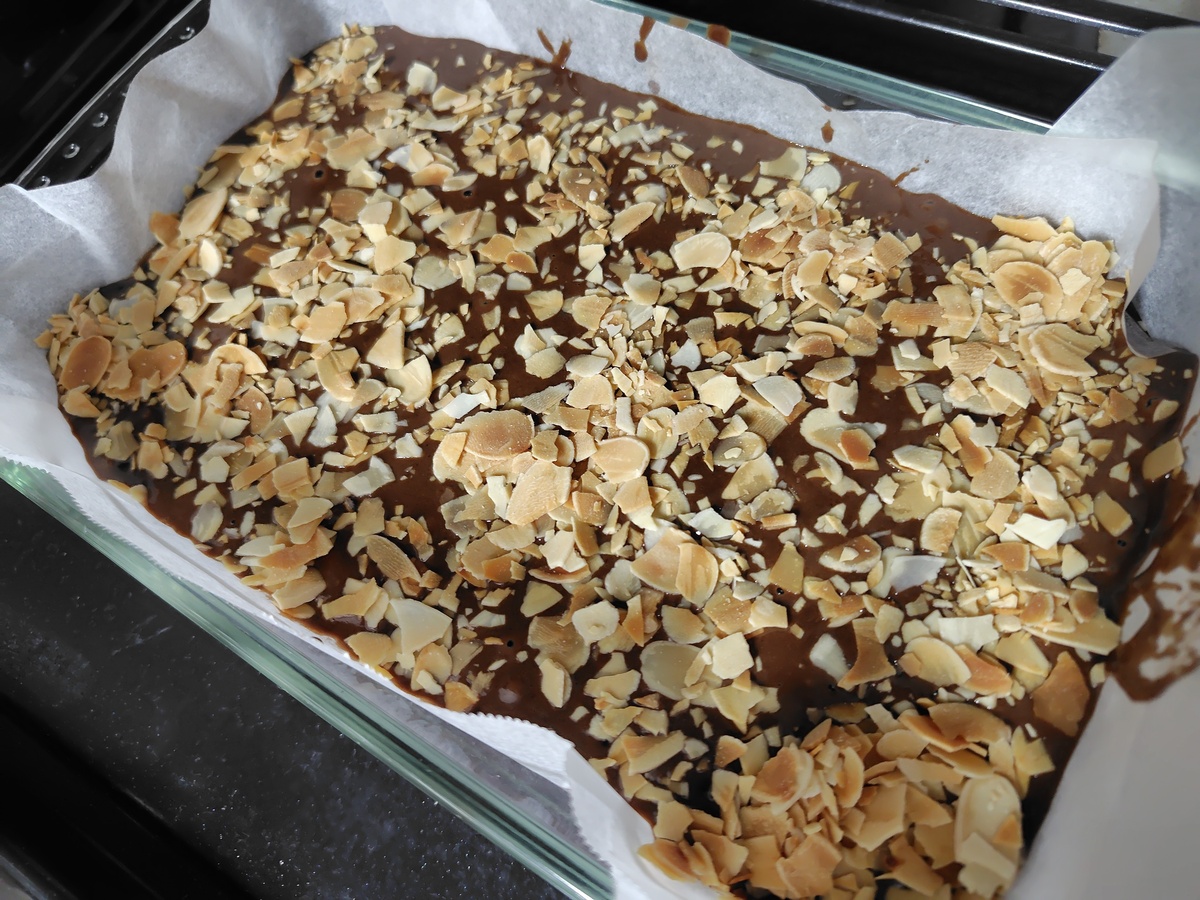 米粉のヴィーガンココアケーキスライスナッツ乗せを