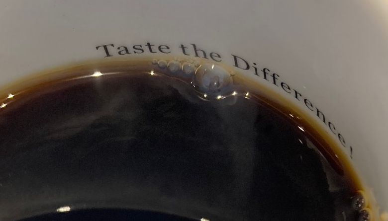 と本日のコーヒーを一口いくまえに、いつもやってしまう遊びというか癖が。