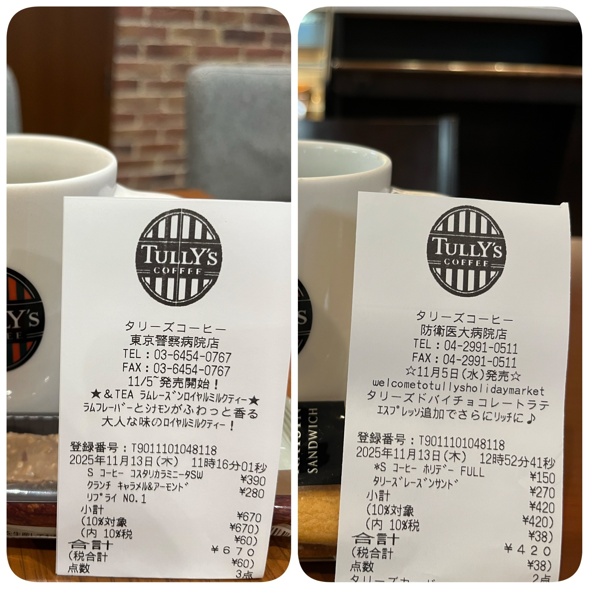 今日のタリーズめぐりは病院内2店舗に行ってきました