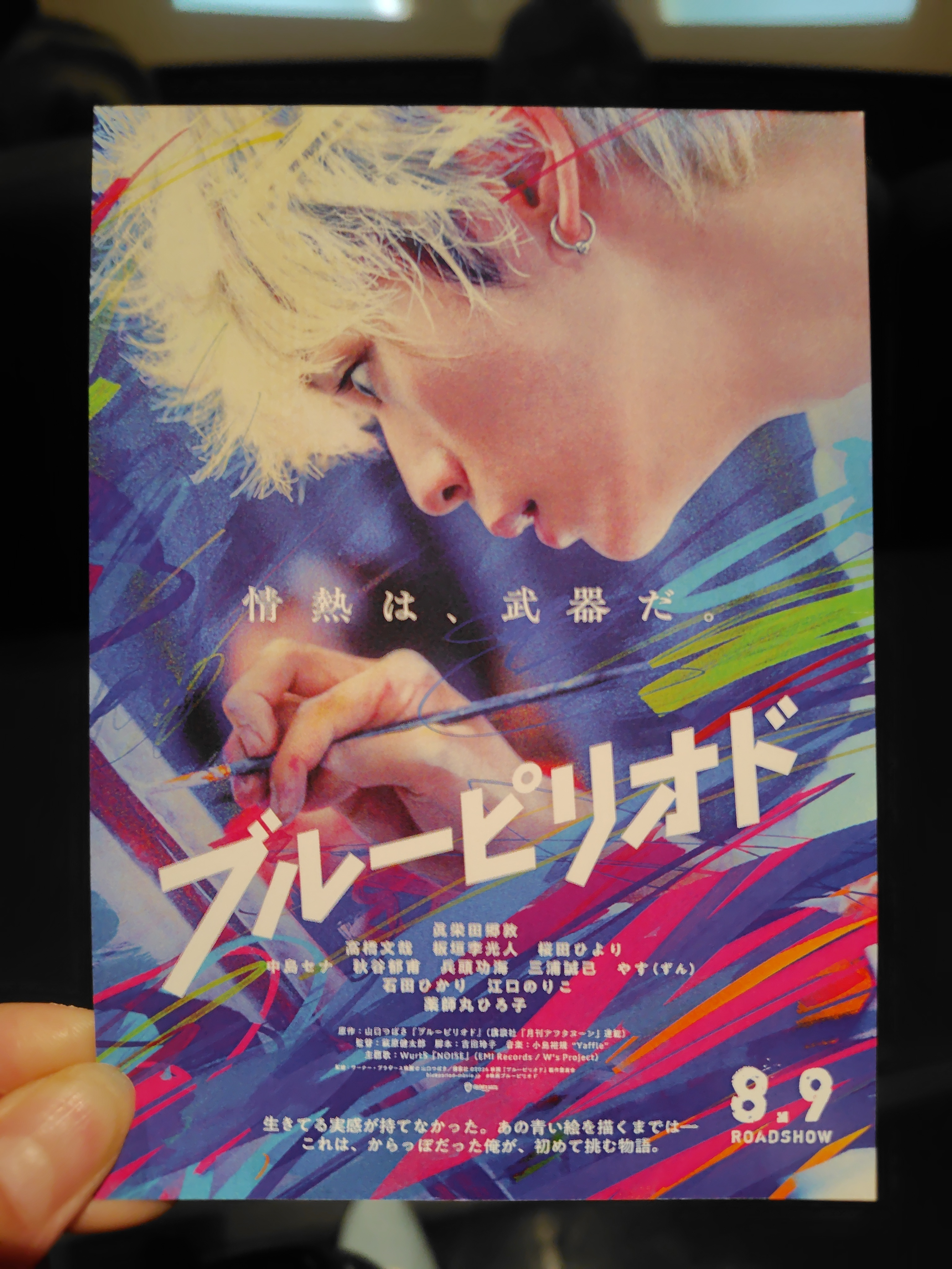 トップ > なんでも写真館 > 映画の試写会へ行ってきました にゃにゃ 2024/07/19 00:52 映画の試写会へ行ってきました ブルーピリオドという 映画の試写会が当選したので 友達を誘って観に行ってきました。 原作は漫画だそうで 友達は漫画を読んだことがあり 映画の方がライトな感じの内容に なっていたとの事。 アニメも放映されていたそうです。 高校生達の青春の葛藤 懐かしい氣持ちになりながら 見ていました。 泣き所もあり、ハンカチと水分必須です。 イケメン俳優さんが沢山出てくるので 目の保養にもオススメの映画でした! ネタバレしないよう 最小限の感想を書いています。 ブルーピリオド 漫画 アニメ 邦画 映画館 映画 青春 イケメン 俳優 目の保養 いいね 共有する 共有する X facebook LINE リンクをコピー コメントする 5 件の返信 (新着順) ミュートしたユーザーの投稿です。 投稿を表示 春 2024/07/20 09:07 おはようございます。 どなたが、出演してらっしゃるのですか? いいね 返信する ミュートしたユーザーの投稿です。 投稿を表示 にゃにゃ 2024/07/20 23:35 春 こんばんは。 1枚目の写真を 拡大してご覧いただきますと 出演者が書かれています。 主役は、眞栄田郷敦さんです。 いいね 返信する ミュートしたユーザーの投稿です。 投稿を表示 matusko 2024/07/20 07:52 いいね 返信する ミュートしたユーザーの投稿です。 投稿を表示 matusko 2024/07/20 07:59 最後に観たのは、これだったと思います。 最高に素晴らしいダンス&ストーリーでした💕💕 いいね 返信する ミュートしたユーザーの投稿です。 投稿を表示 にゃにゃ 2024/07/20 23:42 matusko 早速 あらすじを見てきました。 面白そうな映画ですね! いいね 返信する ミュートしたユーザーの投稿です。 投稿を表示 matusko 2024/07/21 07:20 にゃにゃ ダンス映画がお好きでしたらお勧めです❗️👍️✨ ちなみにこちらも自分の中では一押しです❗️もうかなり前の作品ですが😅 いいね 返信する ミュートしたユーザーの投稿です。 投稿を表示 にゃにゃ 2024/07/21 15:55 matusko フラッシュダンス 何かでオススメにでてきたことがあります。 ご紹介ありがとうございます! いいね 返信する ミュートしたユーザーの投稿です。 投稿を表示 matusko 2024/07/19 20:14 映画なんて最後に観たのいつだろう?🤔 今みたいに入れ替わり制になる前、1度お金を払えば1日何回でも観れてた頃は自分でも呆れる位観に行ってたのに…。 2007年のジョニーデップのが最後かな?かなりショッキングな内容だった‼️😖 映画もドラマも70年代~90年代が1番面白かったな😔 いいね 返信する ミュートしたユーザーの投稿です。 投稿を表示 にゃにゃ 2024/07/20 00:01 matusko え! 一度お金を払えば 映画を何回でも!? なんて素晴らしい!! そんな時代に産まれてみたかったものです。 ジョニー・デップの映画 シザーハンズでしょうか? Netflixで見たことがあります。 いいね 返信する ミュートしたユーザーの投稿です。 投稿を表示 matusko 2024/07/20 01:34 にゃにゃ はい☺️昭和はそうだったんです❗️ 良い時代でした((´∀`)ノ いいね 返信する ミュートしたユーザーの投稿です。 投稿を表示 ジーコ 2024/07/19 07:45 TVでブルーピリオド紹介?してました いいね 返信する ミュートしたユーザーの投稿です。 投稿を表示 にゃにゃ 2024/07/19 12:00 ジーコ 8/9公開だから そろそろ宣伝する時期ですものね! 興味がありそうな内容でしたか? いいね 返信する ミュートしたユーザーの投稿です。 投稿を表示 ジーコ 2024/07/20 08:54 にゃにゃ 朝の番組で一瞬、あ!と思い出していましたレベルですみません いいね 返信する ミュートしたユーザーの投稿です。 投稿を表示 みーたん 2024/07/19 01:24 我が家には全巻あります😌 映画観るリストに入っています。 いいね 返信する ミュートしたユーザーの投稿です。 投稿を表示 にゃにゃ 2024/07/19 01:35 みーたん 漫画を全巻お持ちなほど ブルーピリオドお好きなのですね! 映画も 観るリストに入っているのですか? 公開が待ち遠しいですね! いいね 返信する ミュートしたユーザーの投稿です。 投稿を表示 フェローみほ 2024/07/19 02:07 みーたん にゃにゃ 美大生をフォーカスした漫画というのは、あまりないですよね🤔私も観に行こうかなぁ😊 いいね 返信する ミュートしたユーザーの投稿です。 投稿を表示 にゃにゃ 2024/07/19 02:39 フェローみほ 確かに少なそうですよね! 好きな事をやるのに 今からでも遅くない! と思わせてくれるような映画でした。 8/9公開なので、ぜひ! いいね 返信する ミュートしたユーザーの投稿です。 投稿を表示 ジーコ 2024/07/19 07:15 みーたん 美術=みーたんさん家族を思い出しました いいね 返信する ミュートしたユーザーの投稿です。 投稿を表示 にゃにゃ 2024/07/19 11:59 ジーコ みーたんさんのご家族は 芸術一家なのですか? いいね 返信する ミュートしたユーザーの投稿です。 投稿を表示 みーたん 2024/07/19 16:17 フェローみほ 浪人、当たり前の東京藝術大学が舞台ですね。 芸術の魅力いっぱい。ですね。 いいね 