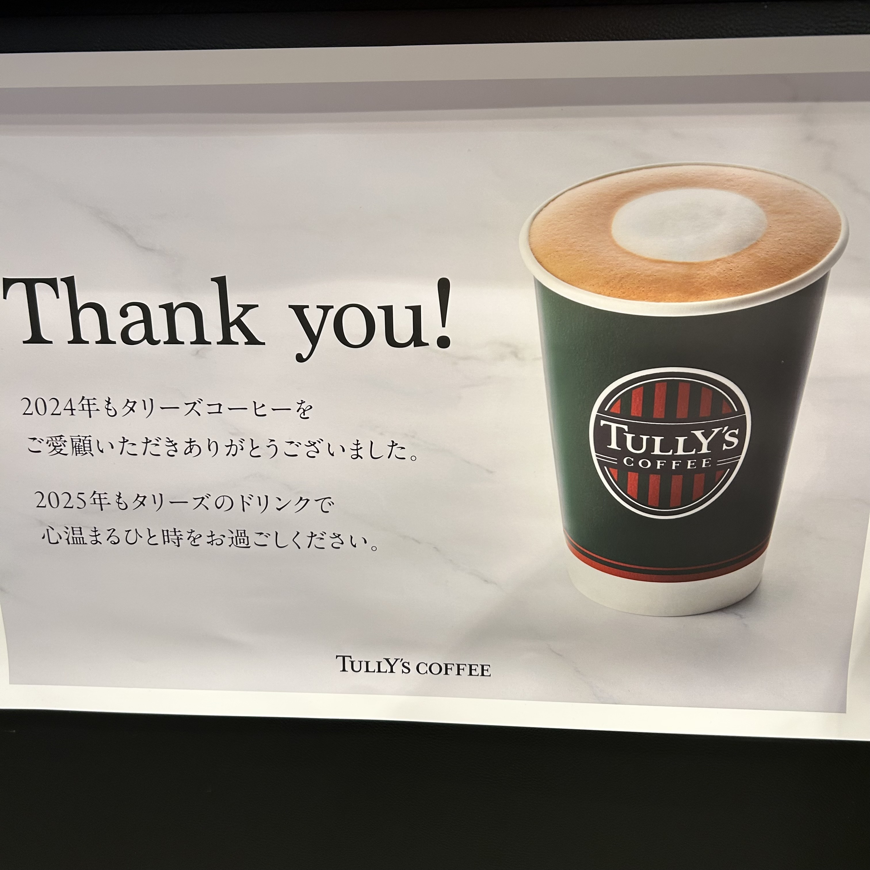 トップ > なんでも写真館 > 本日のタリーズ > 昨日のタリーズ☕️ yukari 2024/12/30 12:06 昨日のタリーズ☕️ 本当にお世話になりました🙇♀️ 昨日、オーダーの後にこのポスターを見つけました✨ 年末の日曜日、とても忙しそうでした😥 なのに居心地良くておかわりのオーダーをしちゃいました😂 よく1人で利用するのですが、昨日は3人で楽しくお話できました🤭 また来年もタリーズまったり時間を楽しみたいです😇 いいね 共有する 共有する X facebook LINE リンクをコピー コメントする 3 件の返信 (新着順) ミュートしたユーザーの投稿です。 投稿を表示 ジーコ 2024/12/30 18:33 気持ちが伝わります いいね 返信する ミュートしたユーザーの投稿です。 投稿を表示 yukari 2024/12/30 18:44 ジーコ ジーコさん、素敵なポスターです💓 来年も通います🤭 いいね 返信する ミュートしたユーザーの投稿です。 投稿を表示 オブリ 2024/12/30 16:26 yukariさん おかわりしても お変わり無い味わいは 年を超えてもかわりはしない… いいね 返信する ミュートしたユーザーの投稿です。 投稿を表示 yukari 2024/12/30 17:25 オブリ オブリさん、確かにそうですね😊 年を超えても通います🤭 いいね 返信する ミュートしたユーザーの投稿です。 投稿を表示 [タリーズ運営]あおいフェロー 2024/12/30 13:42 yukari yukariさん、こんにちは! タリハロ担当のあおいです😊 ポスター見つけていただきありがとうございます! 少しでも気持ちがお届けできれば大変嬉しく思います😊✨ 来年もどうぞよろしくお願いいたします💕 いいね 返信する ミュートしたユーザーの投稿です。 投稿を表示 yukari 2024/12/30 17:23 [タリーズ運営]あおいフェロー あおいさん、コメントありがとうございます♡ ポスターに目がいっちゃいました🤭 来年も通います🙌 よろしくお願い致します🥰 いいね 返信する