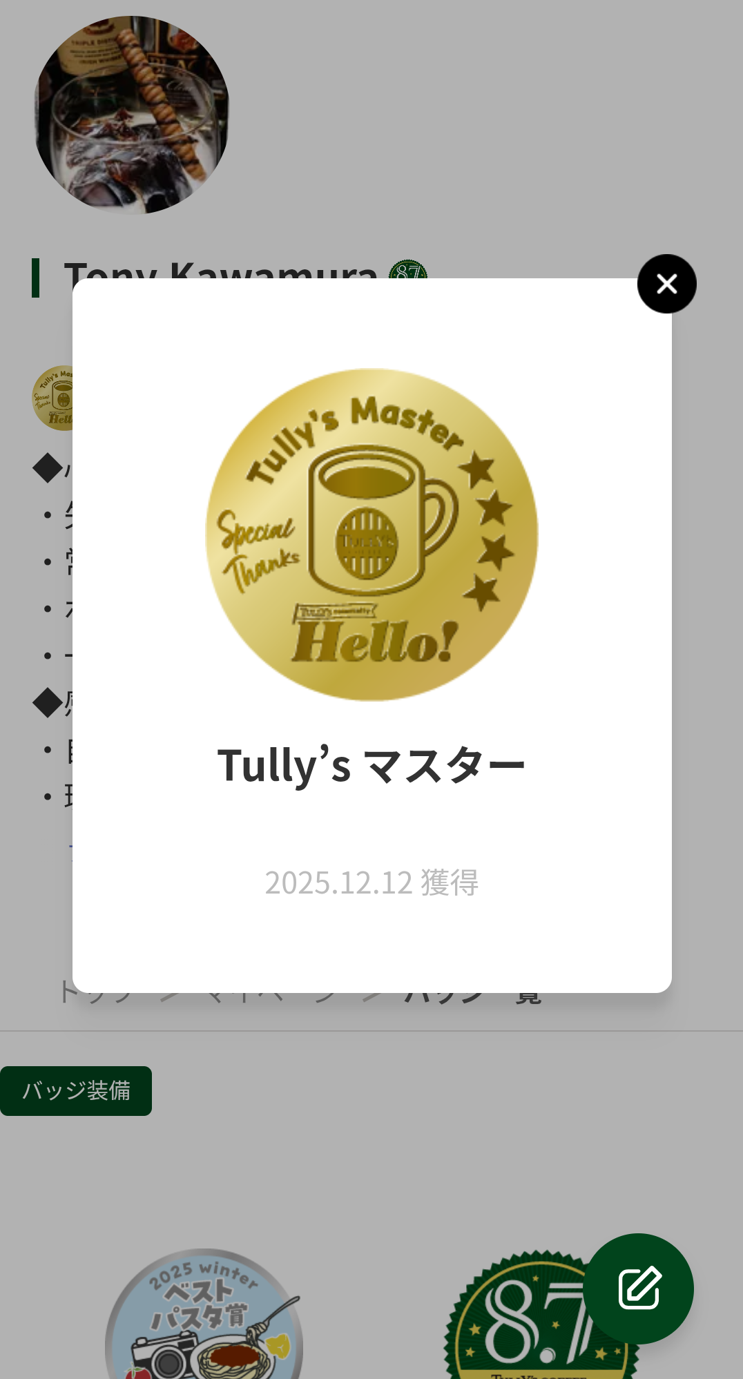 4月から投稿されて頂き、目標の年内にTULLY'S mマスターを獲得出来ました。