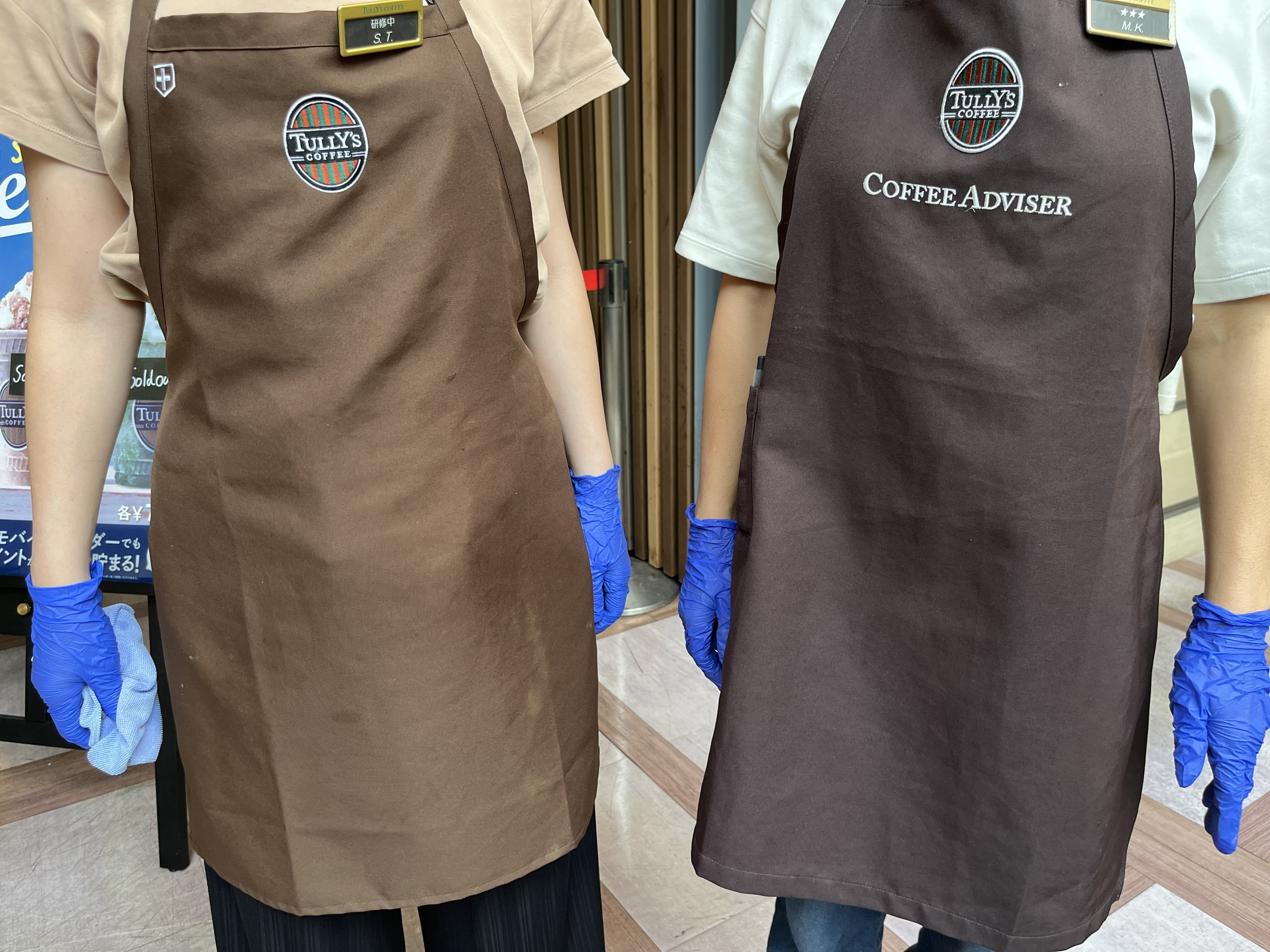 左のかたは普通店舗でいったらブラックエプロンなんですけど、病院内店舗だとライトブラウンのエプロン色なんです