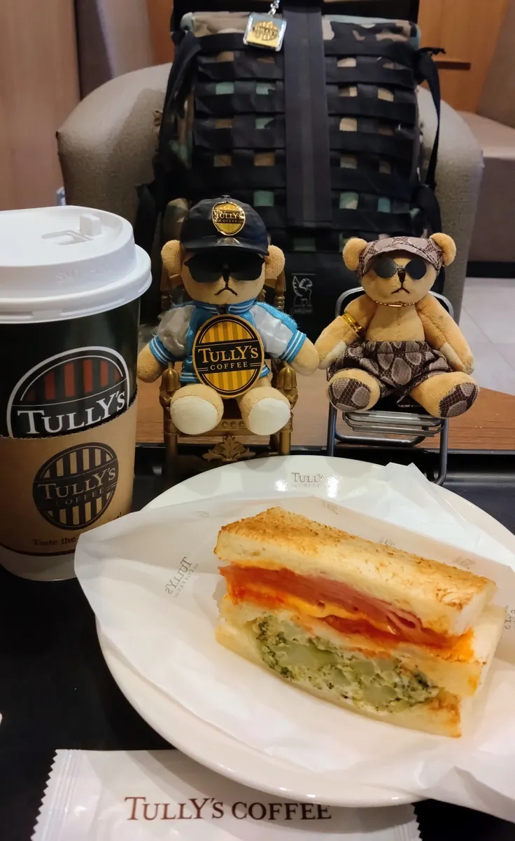 昨日もホムタリで本日のコーヒー(ピッコロバンビーノ)とハムチーズサラダサンドのモーニングセットを頂きました😆
