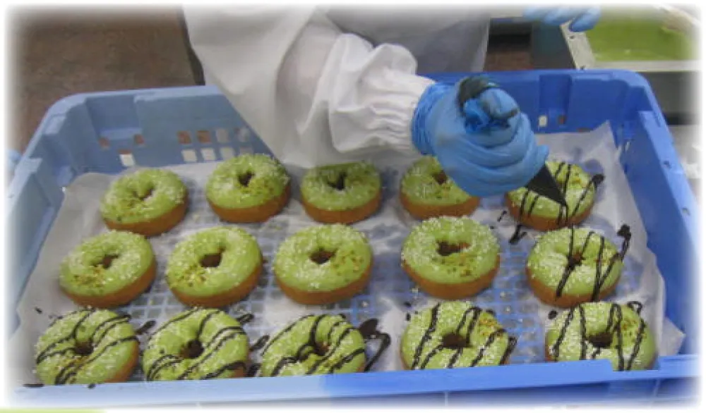 ピスタチオドーナツがどのようにデコレーションされていくのか、ちょっぴりご紹介👀