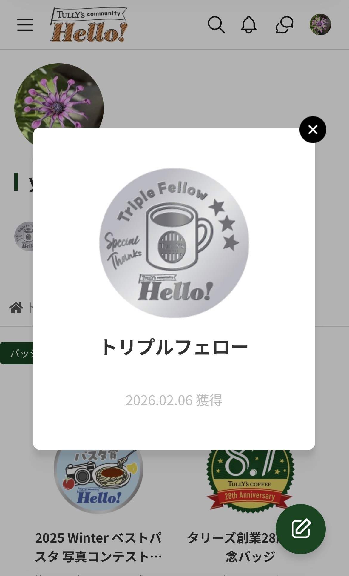トップ > なんでも写真館 > 日々の写真 > やっとこの日が😆 yukari 2026/02/06 21:26 やっとこの日が😆 やっとトリプルフェローになることができました✨ これからもよろしくお願いします😊 いいね 共有する 共有する X facebook LINE リンクをコピー コメントする 4 件の返信 (新着順) ミュートしたユーザーの投稿です。 投稿を表示 penguinlovescoffee 2026/02/07 08:14 おめでとうございます♪ いいね 返信する ミュートしたユーザーの投稿です。 投稿を表示 yukari 2026/02/07 10:16 penguinlovescoffee ありがとうございます♡ いいね 返信する ミュートしたユーザーの投稿です。 投稿を表示 matusko 2026/02/07 06:25 おめでとうございます㊗️🎉 いいね 返信する ミュートしたユーザーの投稿です。 投稿を表示 yukari 2026/02/07 10:15 matusko ありがとうございます🥰 いいね 返信する ミュートしたユーザーの投稿です。 投稿を表示 Yysasaki 2026/02/07 01:41 Congratulations 🩷 Have a nice day. 🎯 いいね 返信する ミュートしたユーザーの投稿です。 投稿を表示 yukari 2026/02/07 10:15 Yysasaki ありがとうございます😊 いいね 返信する ミュートしたユーザーの投稿です。 投稿を表示 ralikkuma 2026/02/06 22:15 トリプルフェロー昇格おめでとうございます🎉🎊㊗️ これからもよろしくお願いします🙇 いいね 返信する ミュートしたユーザーの投稿です。 投稿を表示 yukari 2026/02/06 22:40 ralikkuma ありがとうございます♡ こちらこそよろしくお願いします😊 いいね 返信する