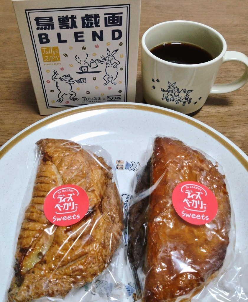鳥獣戯画ブレンドのおともに選んだのはあの“マツコの知らない世界”でマツコが絶賛した黄金アップルパイと姉妹品の黄金チョコレートパイ。