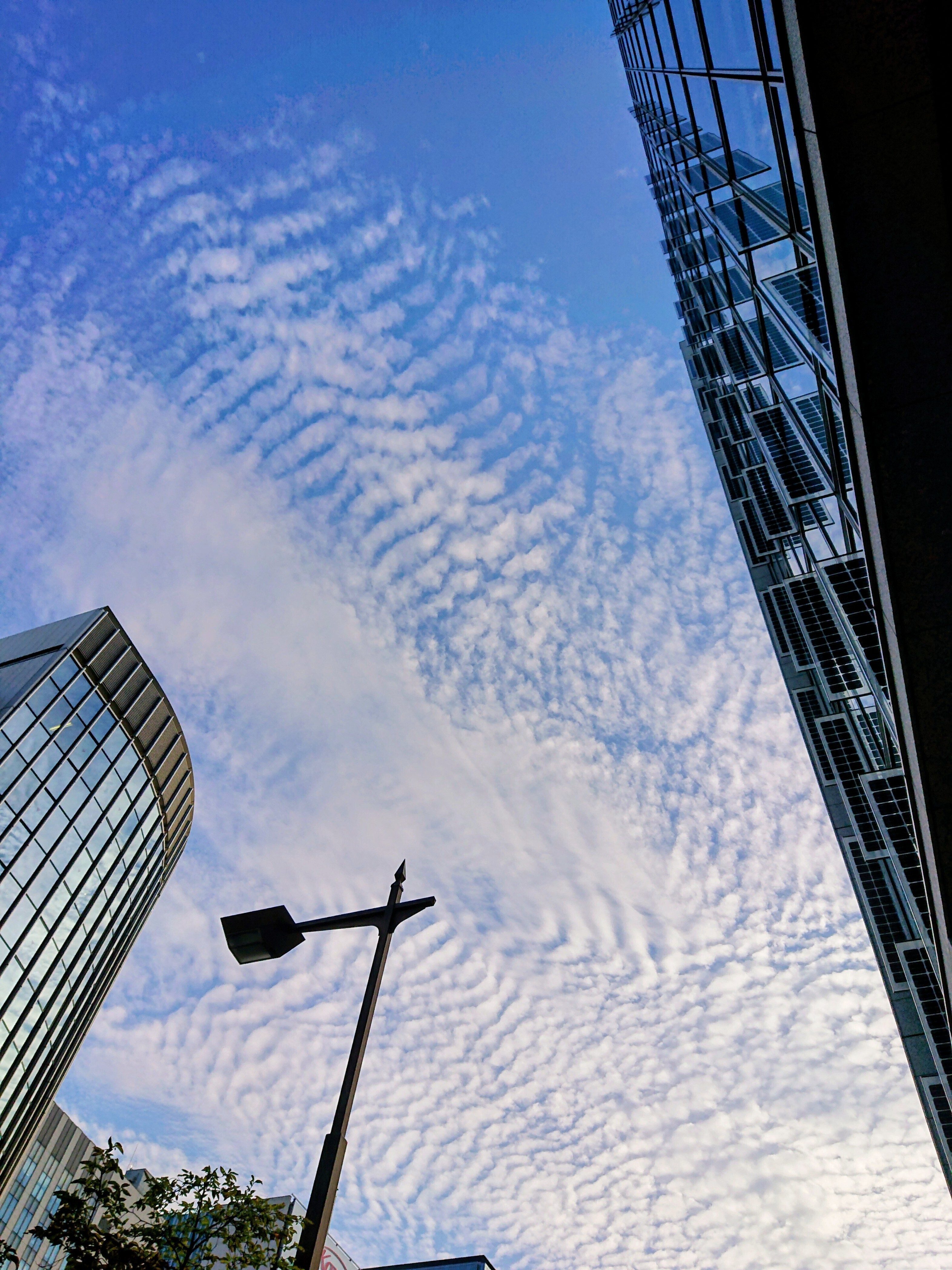 夕刻前、ふと空を見上げたたら、ウロコ雲でした。