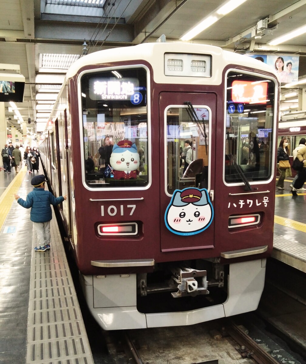 3月28日までは大人気のちいかわのラッピング列車も運行されています。(宝塚線はちいかわ号、京都線はうさぎ号)