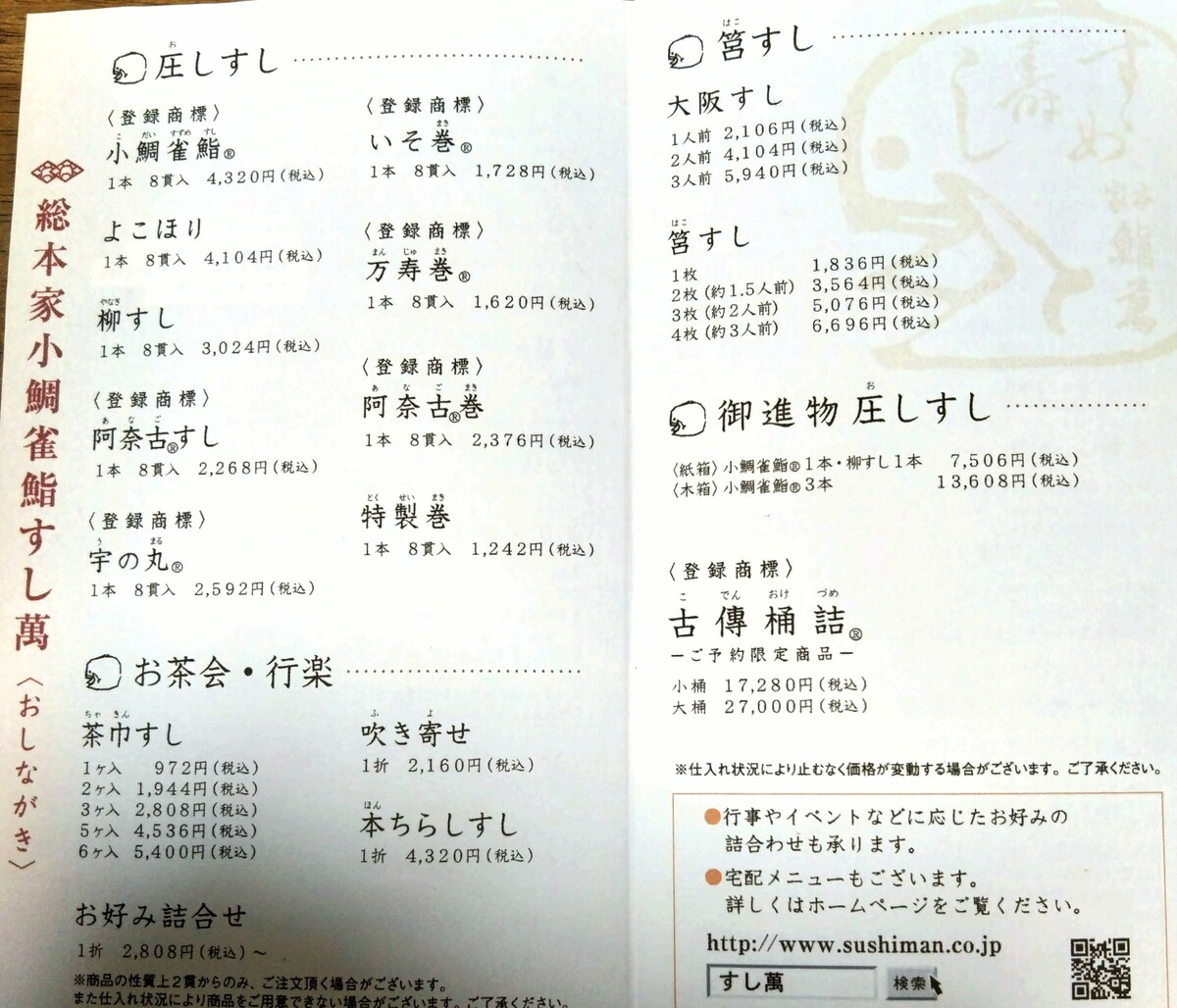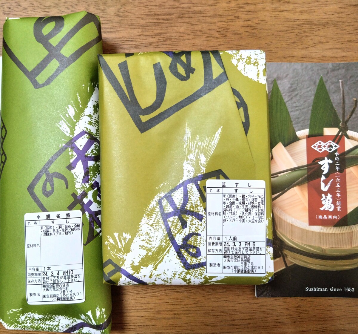 大阪の押し寿司の老舗「総本家小鯛雀鮨すし萬」の小鯛雀鮨と筥(はこ)すし🍣