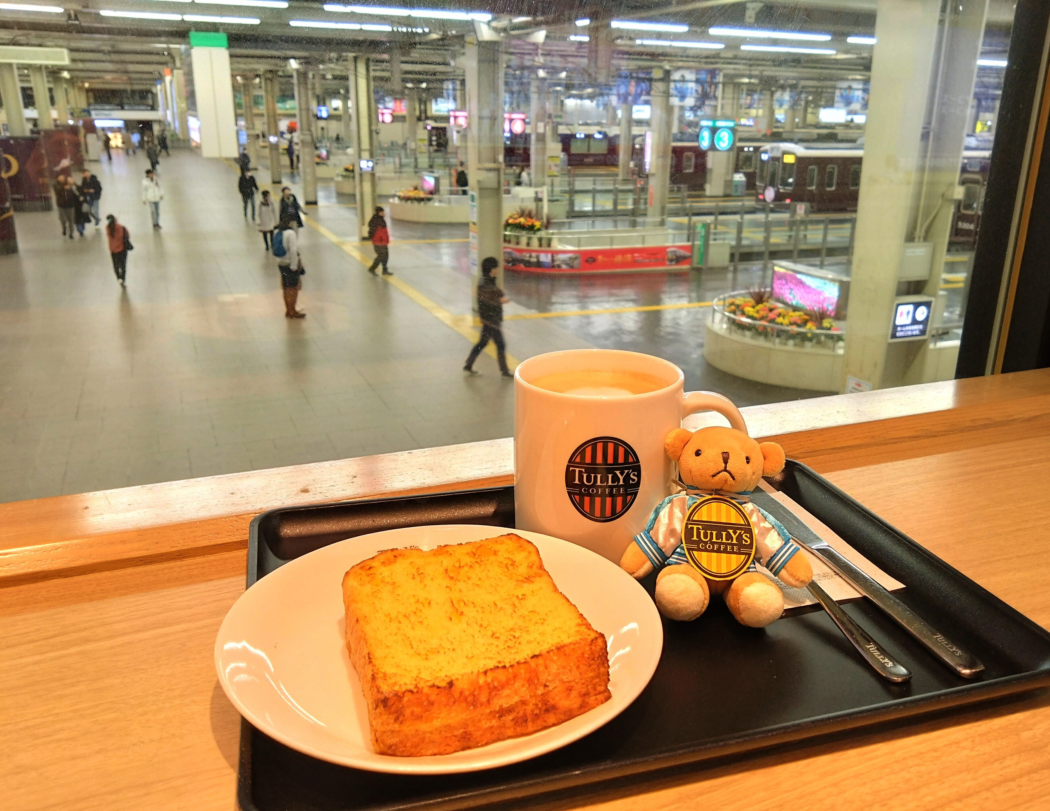 今朝は前回訪れる事が出来なかった阪急大阪梅田駅3F店でフレンチトーストとカフェラテを頂きました。