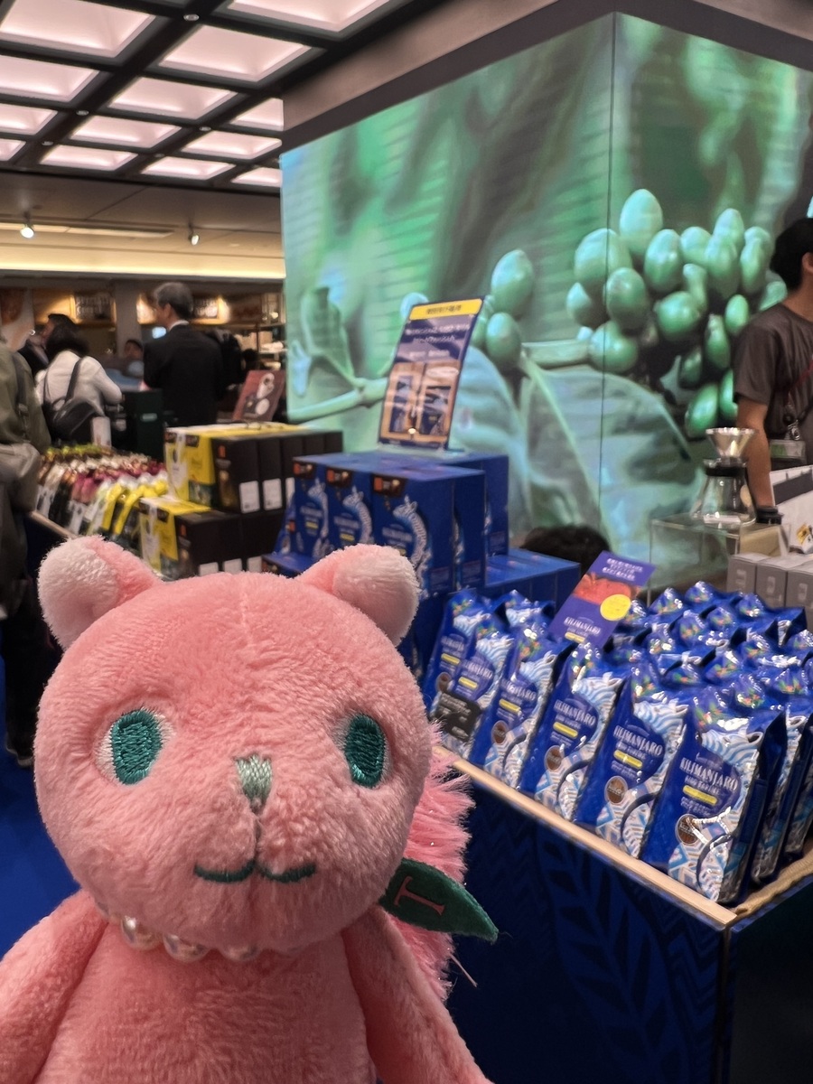 先行でキリマンジャロ販売されていたのかな…綺麗に陳列されていますね✨ブルーのシマウマ🦓さんパッケージ綺麗な色、可愛いです。新幹線で提供のコーヒー試飲できるの嬉しいですね。スクール気になります。雰囲気伝わってきました。ありがとうございました♫
