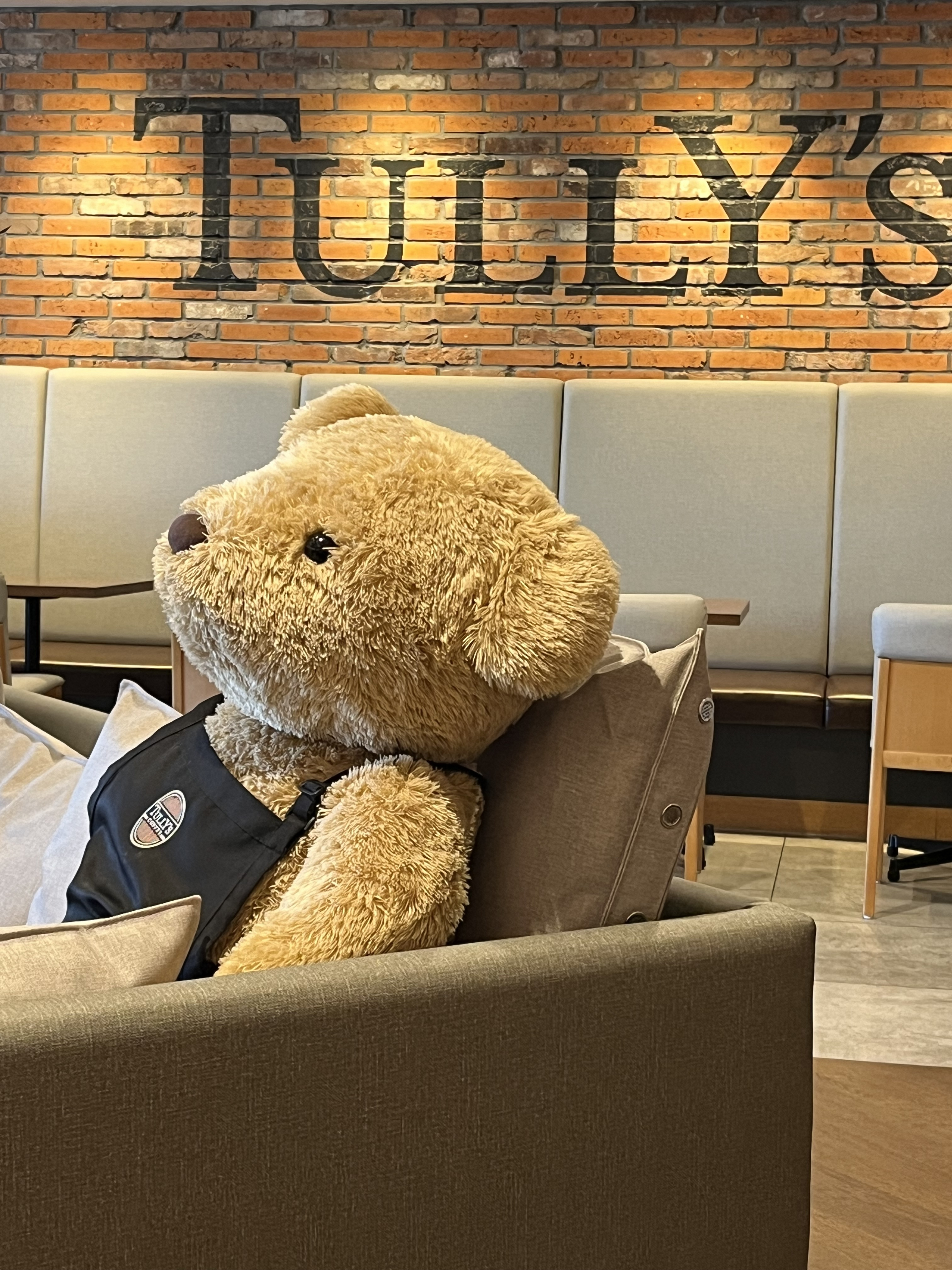 投稿を表示バックのTULLY'Sのロゴとベアが決まってます😊