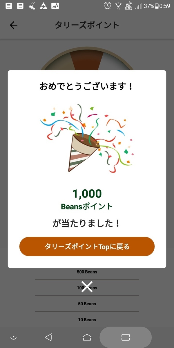昨日に引き続き今日も1000Beans当選! ありがとうございました
