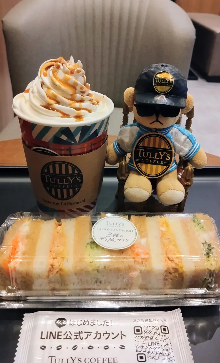 一昨日(12/21)はホムタリでアイリッシュラテ(ホイップ増量+シナモントッピング)と3種のデリ風サラダサンドを頂きました😆