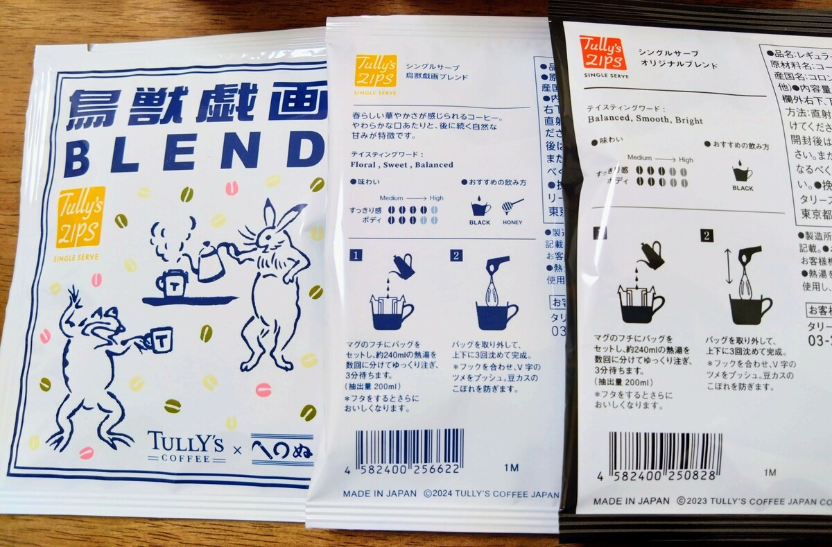 鳥獣戯画ブレンドはオリジナルに比べ華やかで飲みやすい印象。