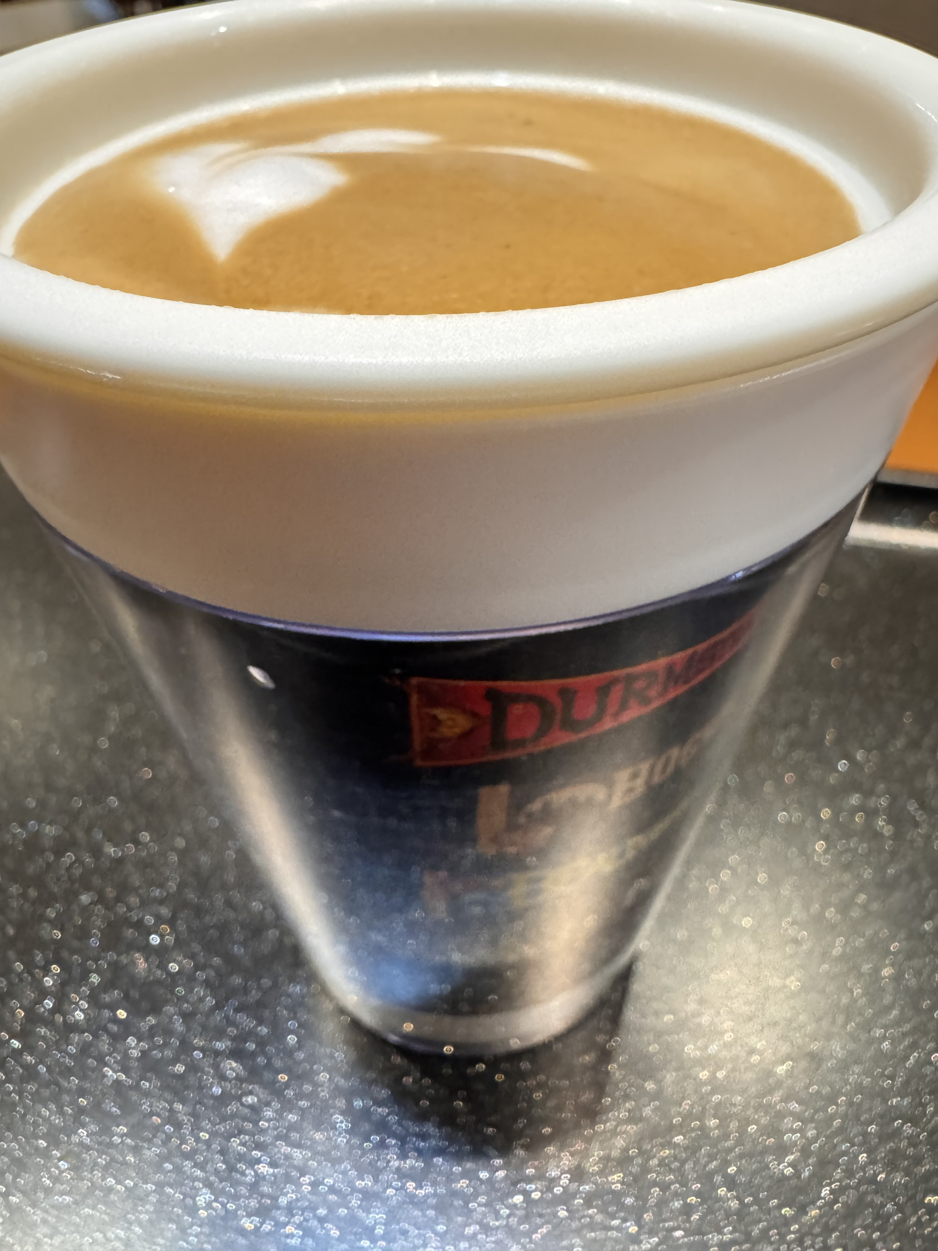 あおいフェローさん、描いていただいたホムタリのフェローさんは初心者の私に色々教えて頂いたりスリーブにコメントや絵を描いて頂いてもらっており今回もラテアートに私が喜んでお礼を伝えるとフェローさんもニコニコしていました。