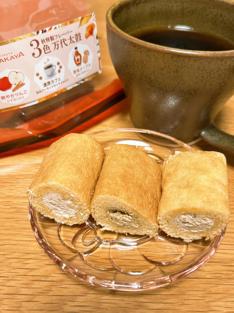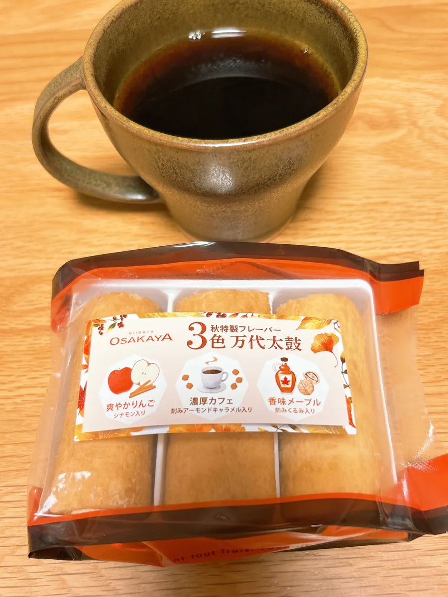 万代太鼓はバニラかいちごがありますが、この味は初めて食べました〜。コーヒーといいペアリングでしたよ(^^)