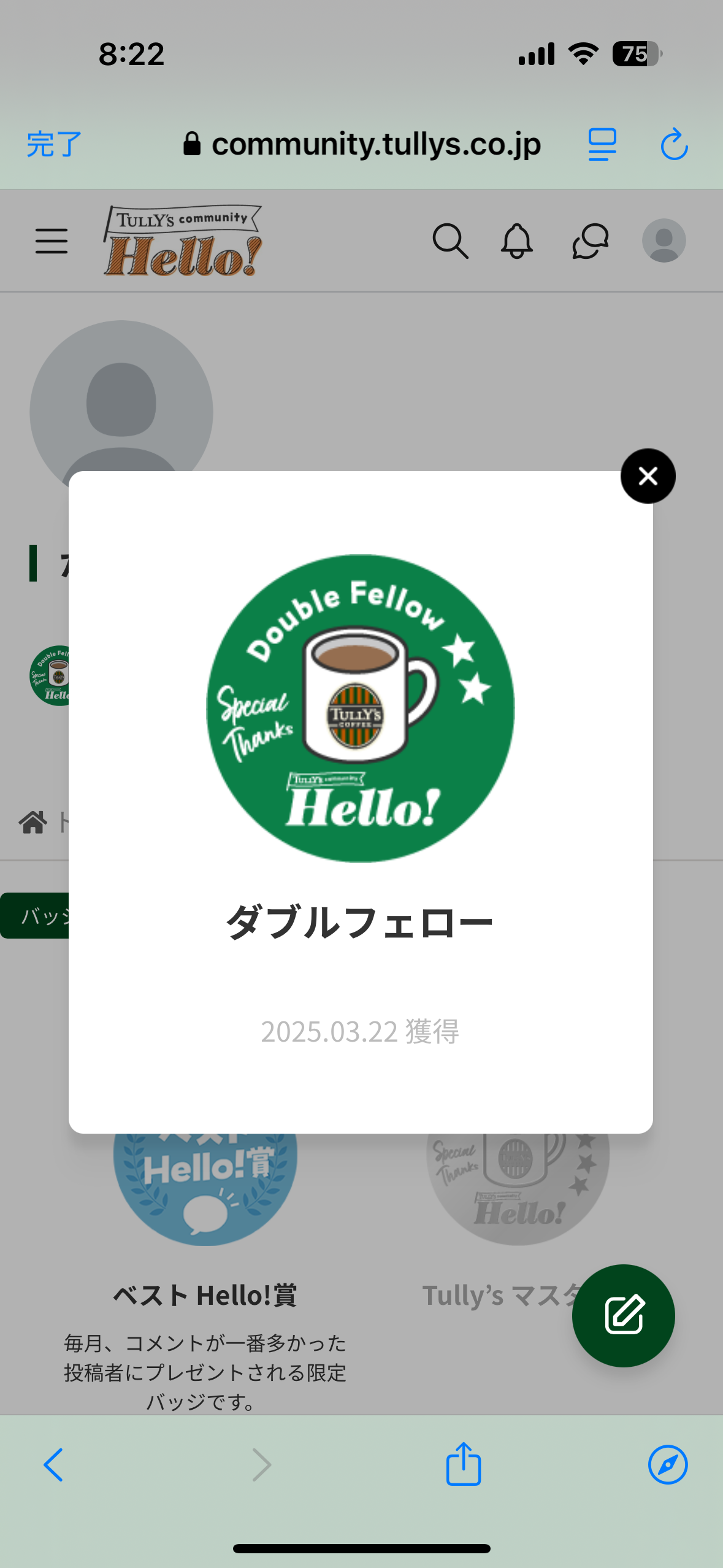 トップ > なんでも写真館 > ダブフェ(とは言わないか笑)になりました! からすへび 2025/03/23 08:33 ダブフェ(とは言わないか笑)になりました! おはようございます! ダブルフェローになりました!皆様のおかげでございます本当にありがとうございます🙇🏻♂️ 熱心なタリーズファンの皆様とはちょっと違う内容が多めですが💦、引き続き北の大地から発信していきたいと思いますのでよろしくお願いします😙次はトリプル(サーティワンみたい🍦)!先は長いけど頑張ります😤 いいね 共有する 共有する X facebook LINE リンクをコピー コメントする 7 件の返信 (新着順) ミュートしたユーザーの投稿です。 投稿を表示 ジーコ 2025/03/23 21:04 ご昇格おめでとうございます いいね 返信する ミュートしたユーザーの投稿です。 投稿を表示 からすへび 2025/03/23 21:07 ジーコ ありがとうございます! いいね 返信する ミュートしたユーザーの投稿です。 投稿を表示 しお 2025/03/23 14:52 おおおー✨ タブフェおめでとうございまぁーす😆 次はトリフェ(なんか美味しそー💕)ですねっ👍 いいね 返信する ミュートしたユーザーの投稿です。 投稿を表示 からすへび 2025/03/23 15:52 しお ありがとうございます! トリフェ、どんな食べ物でしょうねぇ😋 いいね 返信する ミュートしたユーザーの投稿です。 投稿を表示 森のカフェ 2025/03/23 11:05 おめでとうございます🎉🎊 次はトリフェですね😊 いいね 返信する ミュートしたユーザーの投稿です。 投稿を表示 からすへび 2025/03/23 12:23 森のカフェ ありがとうございます! トリフェ🤣目指して頑張ります! いいね 返信する ミュートしたユーザーの投稿です。 投稿を表示 ralikkuma 2025/03/23 10:48 おめでとうございます🎊🎉㊗️ トリプル狙って下さいね😊 いいね 返信する ミュートしたユーザーの投稿です。 投稿を表示 からすへび 2025/03/23 12:21 ralikkuma ありがとうございます! 目の黒いうちに何とか達成したいと思います🤣 いいね 返信する ミュートしたユーザーの投稿です。 投稿を表示 しおん 2025/03/23 10:10 ダブフェ😂😂昇進 おめでとうございます!!🎉🎉 いいね 返信する ミュートしたユーザーの投稿です。 投稿を表示 からすへび 2025/03/23 12:16 しおん ありがとうございます! いつも薄い内容でスミマセン🙇🏻♂️ いいね 返信する ミュートしたユーザーの投稿です。 投稿を表示 みさと 2025/03/23 09:54 ダブフェ😆おめでとうございます🎊 いいね 返信する ミュートしたユーザーの投稿です。 投稿を表示 からすへび 2025/03/23 12:15 みさと ありがとうございます! いつもしょーもない内容でスミマセン🙇🏻♂️ いいね 返信する ミュートしたユーザーの投稿です。 投稿を表示 ポイ 2025/03/23 09:34 ⭐️⭐️ダブフェ昇進🤭 おめでとうございます✨🎉 いいね 返信する ミュートしたユーザーの投稿です。 投稿を表示 からすへび 2025/03/23 12:14 ポイ ありがとうございます! 降格しないよう頑張ります🤣 いいね 返信する ミュートしたユーザーの投稿です。 投稿を表示 ポイ 2025/03/23 12:17 からすへび 降格はナイナイ🤣 強制退会はあるけど💦💦 いいね 返信する