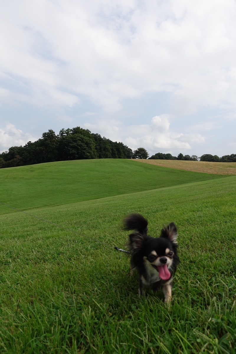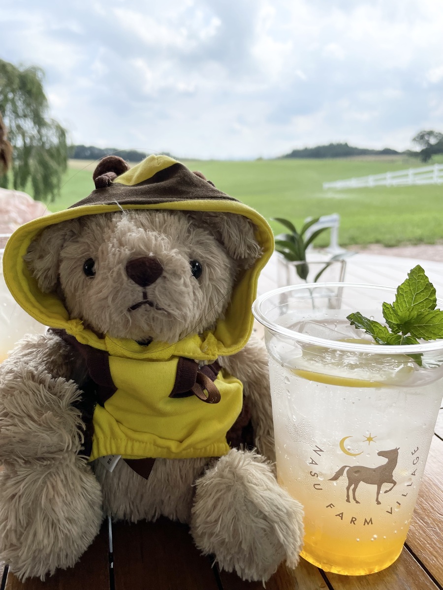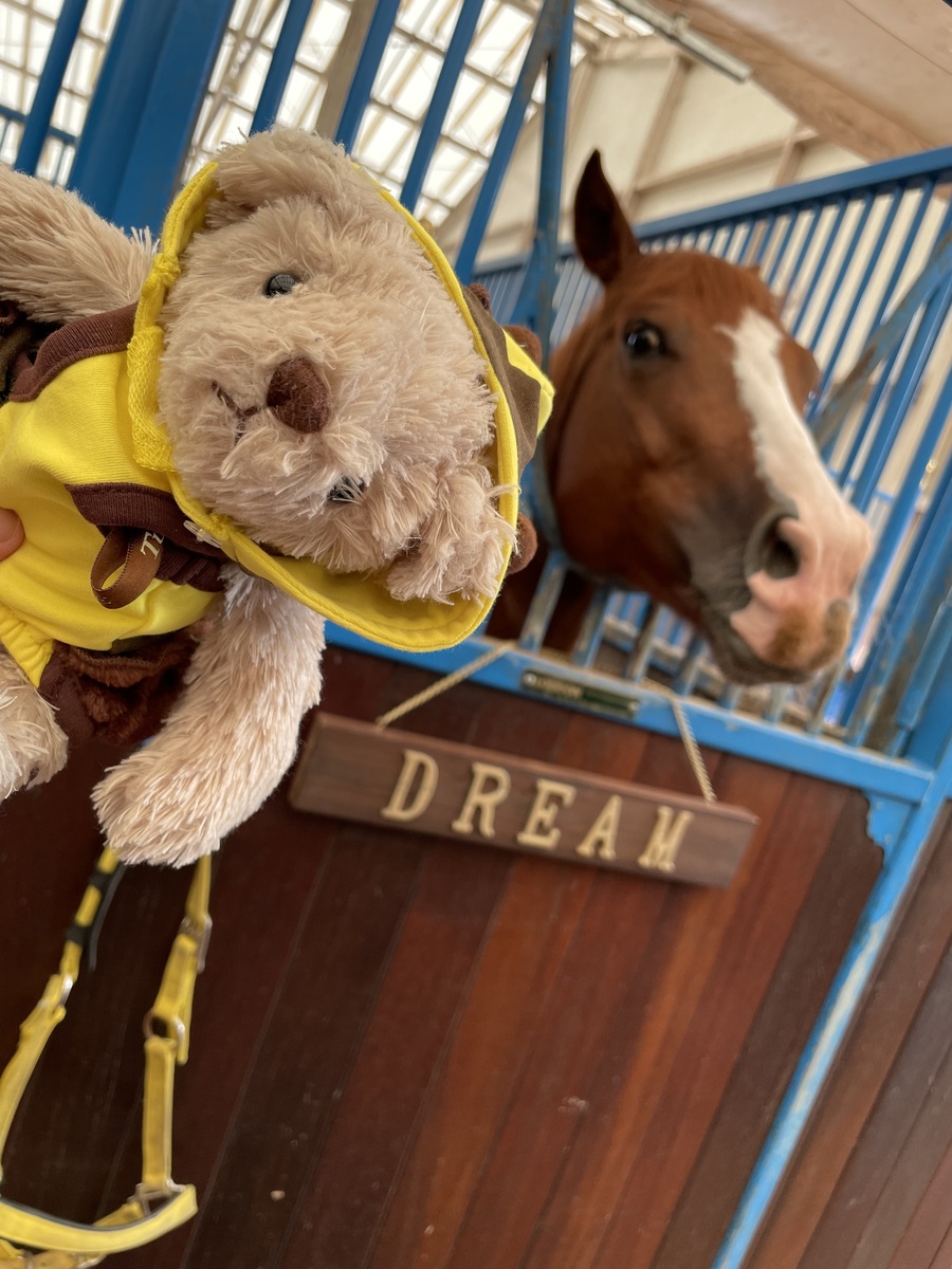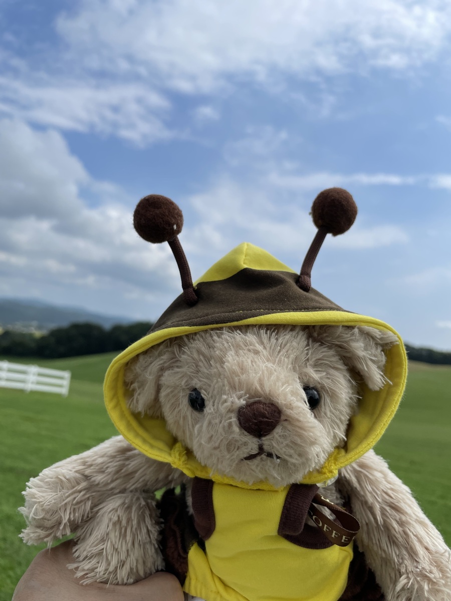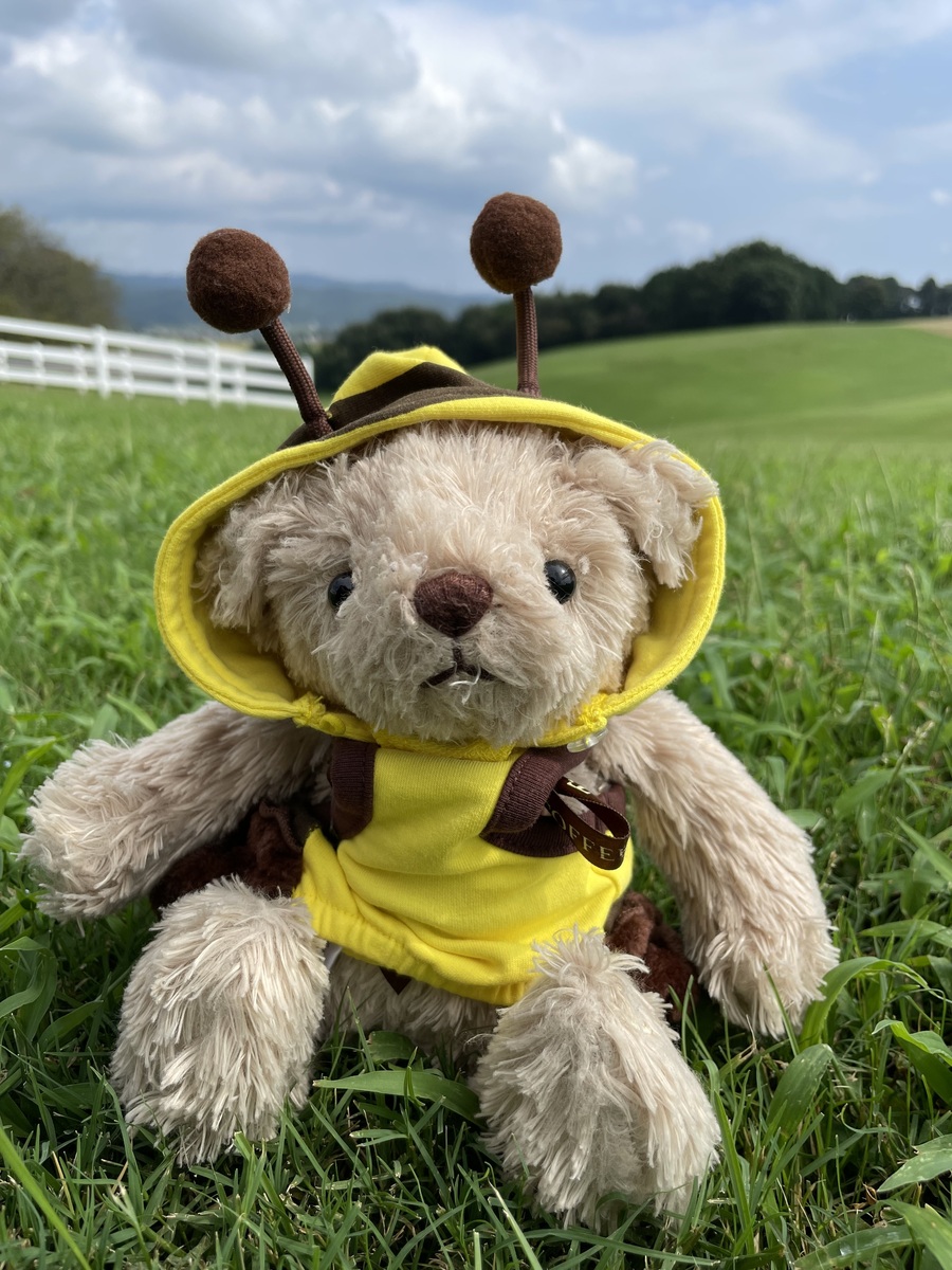 ハチベアちゃんも初めて?のお馬や芝生で少し緊張気味に見えます。