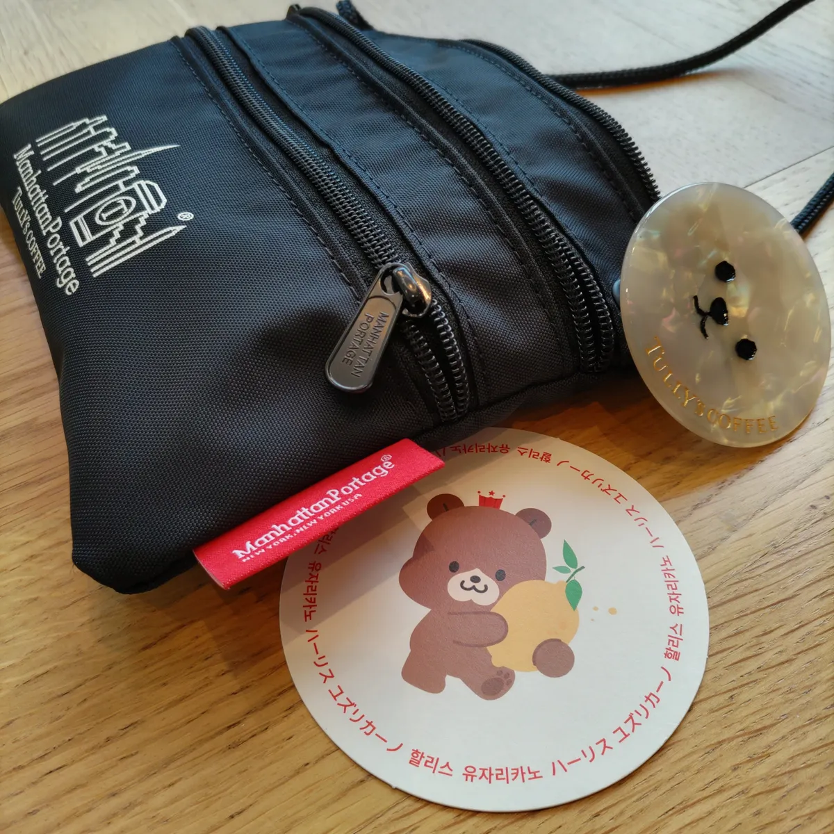 タリーズとマンハッタンコラボのサコッシュに、お月見ベアフルつけていきました。