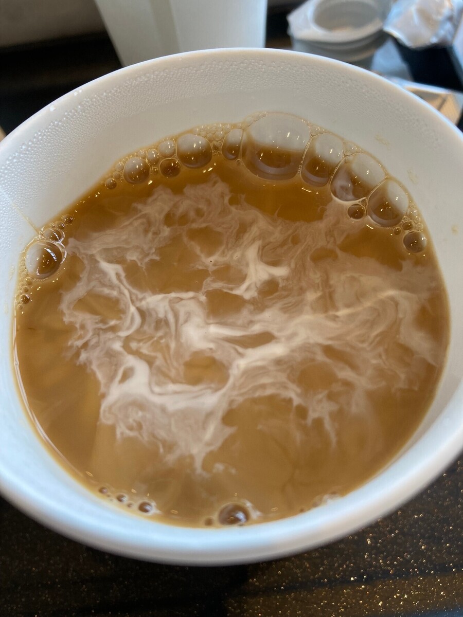 ミルク注いでちょっとだけカップを揺らして