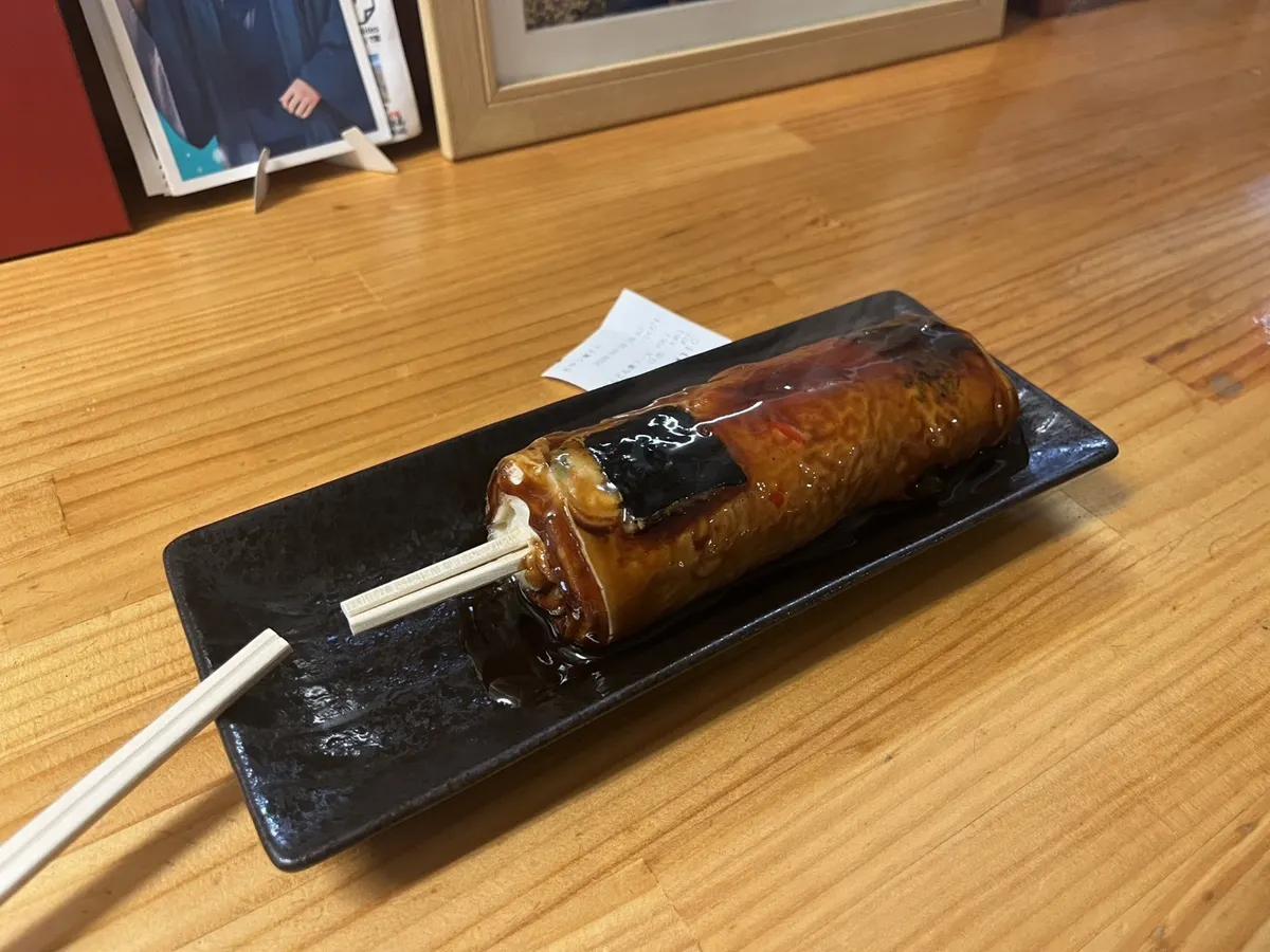 お好み焼きが串に巻き付いているとしたら太いし大きいのでしょうね?