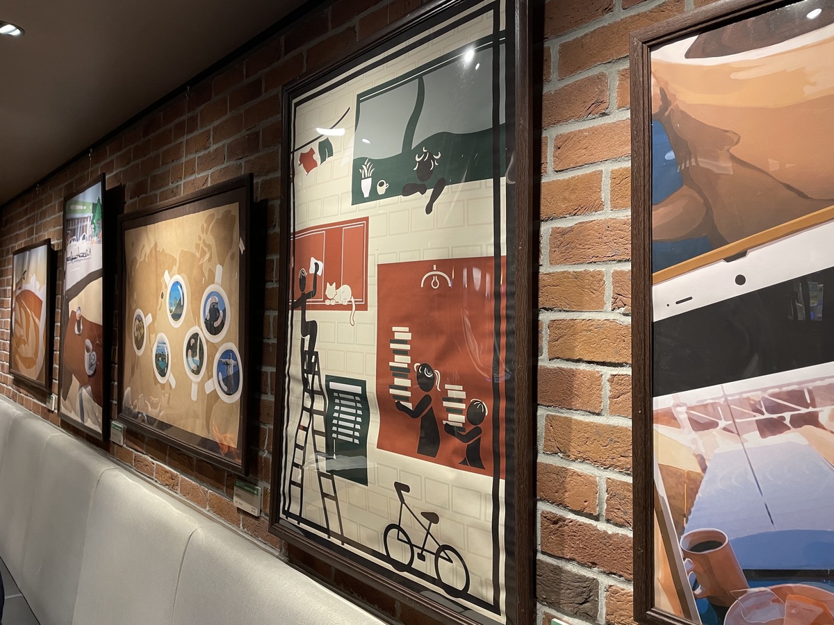 ↑横浜らしいレンガな壁に、どこかのデザイン学校?の方々の作品が並んでいてアートな店内✨この他にも内装が凝っててステキでした✨