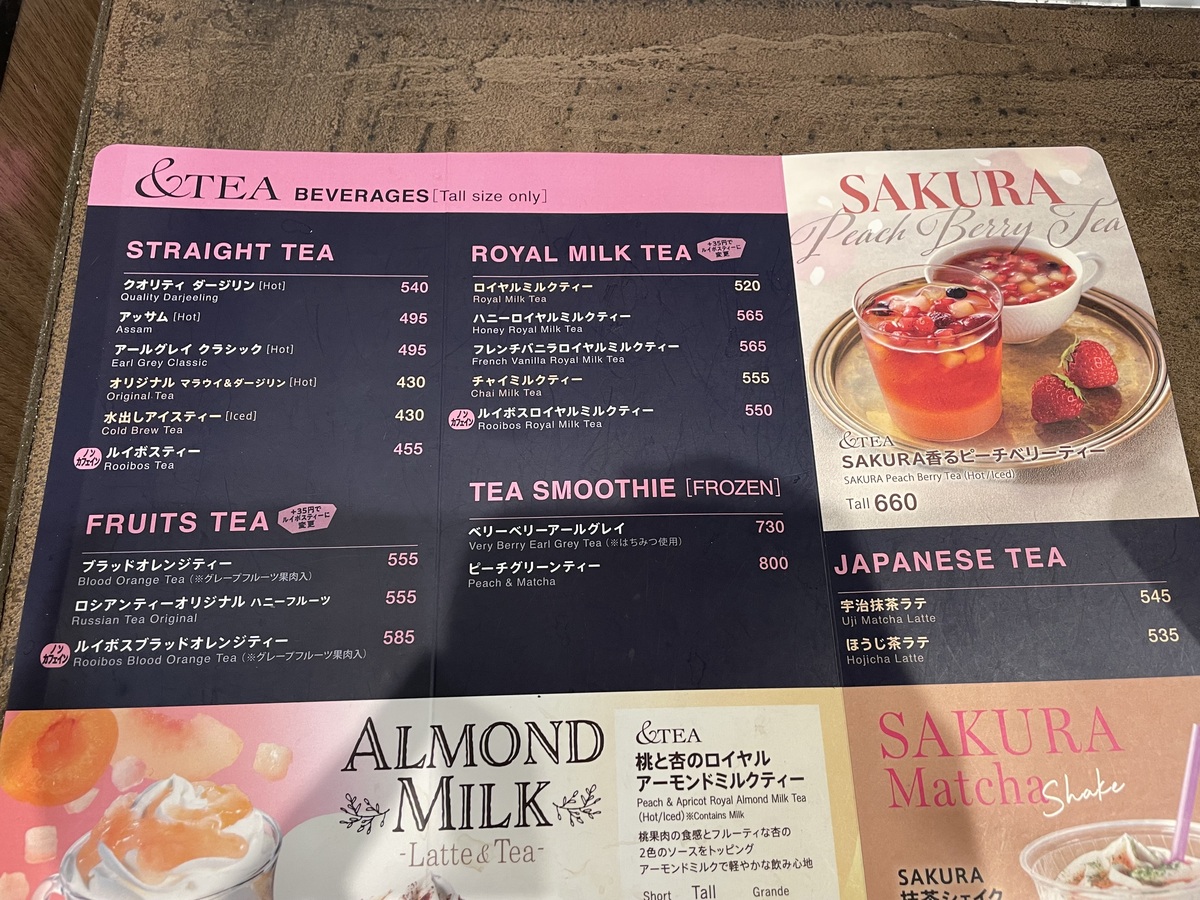 ↑&TEAのメニューって、通常店にもあるものと、ここだけのもので色分けされてるんですね!初心者にも分かりやすく、ありがたかったです👍