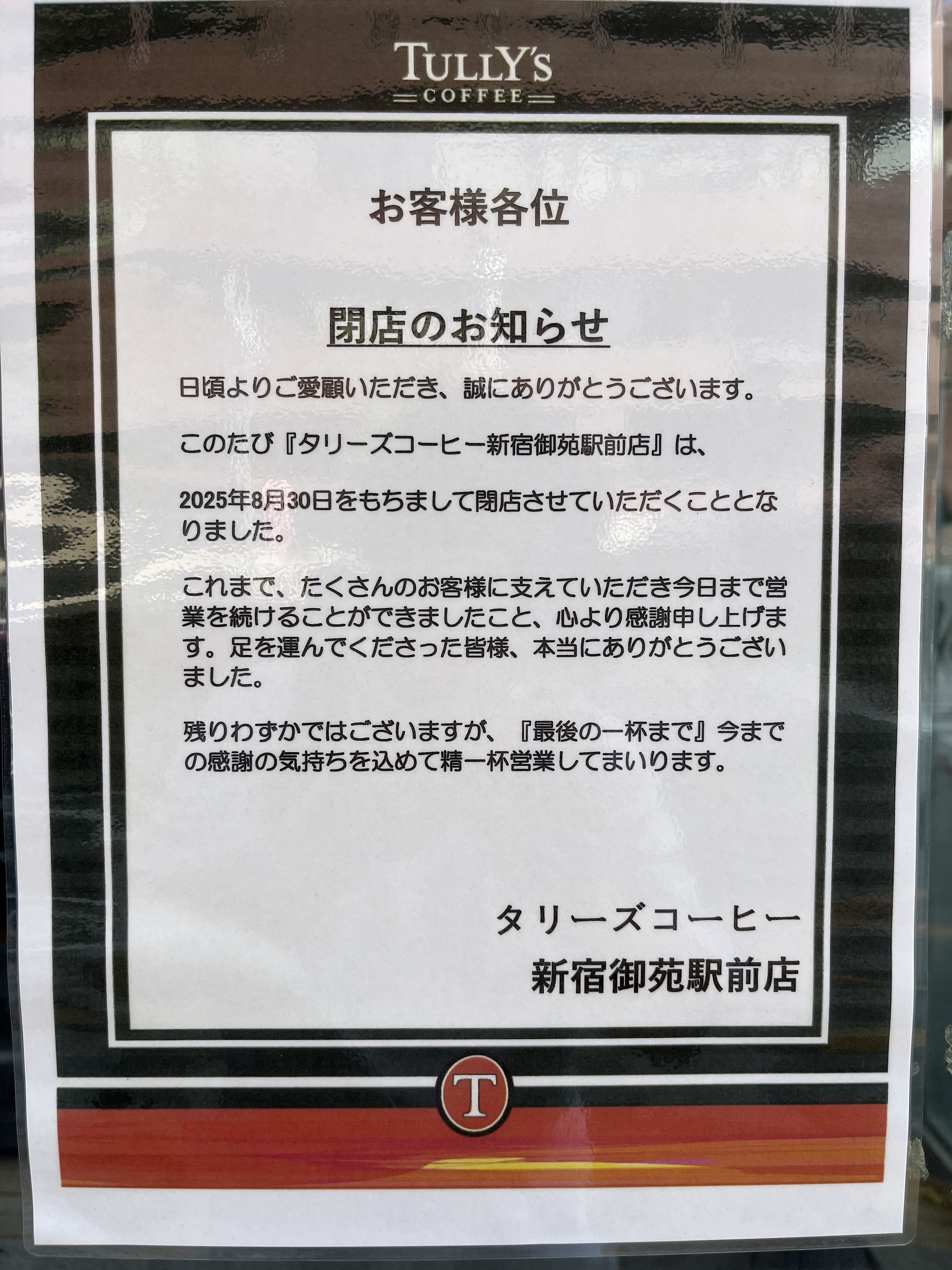 ジャスミンさんの情報をもとに2025/08/30閉店してしまう新宿御苑駅前店へ行ってきたました