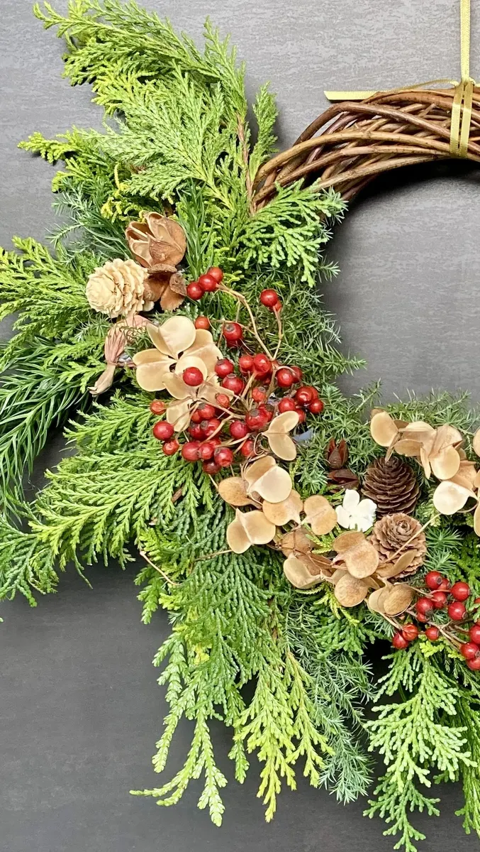 毎年恒例のクリスマスリース作り✨お友だち主催のワークショップに参加、おしゃべり控えめに真剣に作りました♪満足の出来栄え!