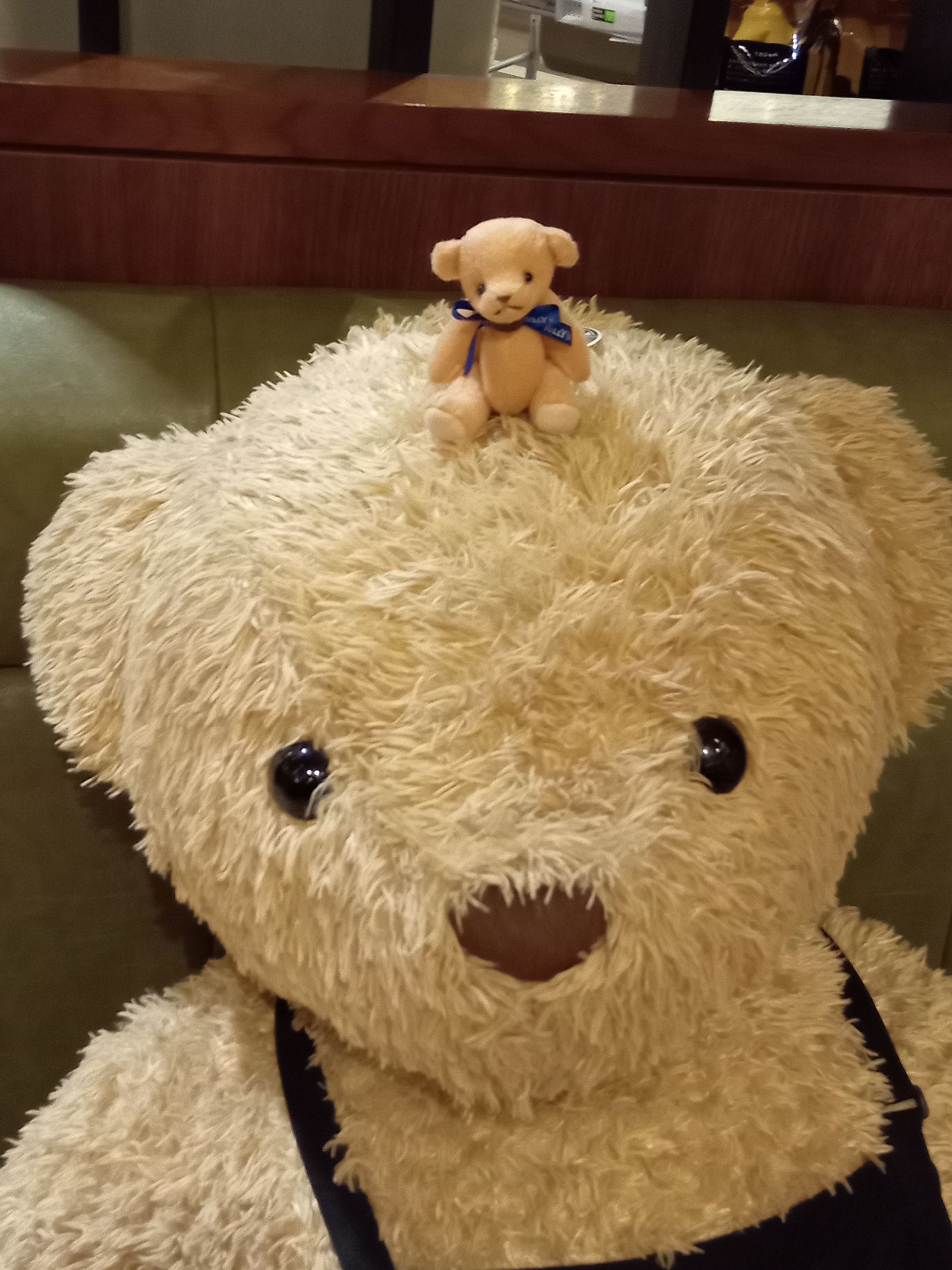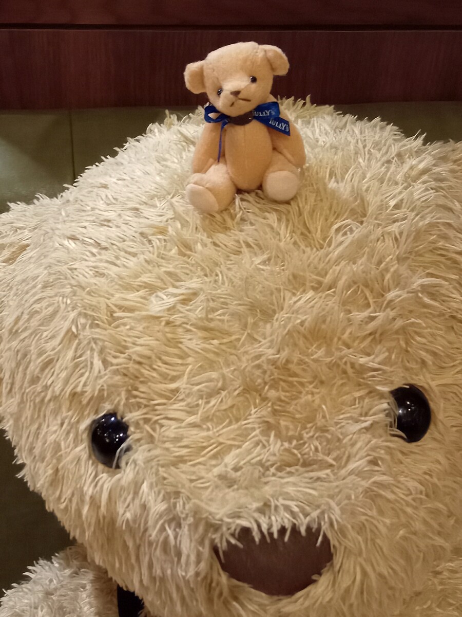 プチテディの口がへの字になって なんで乗せられるんだ?ここ頭だじょー なんて言ってるみたいです😆