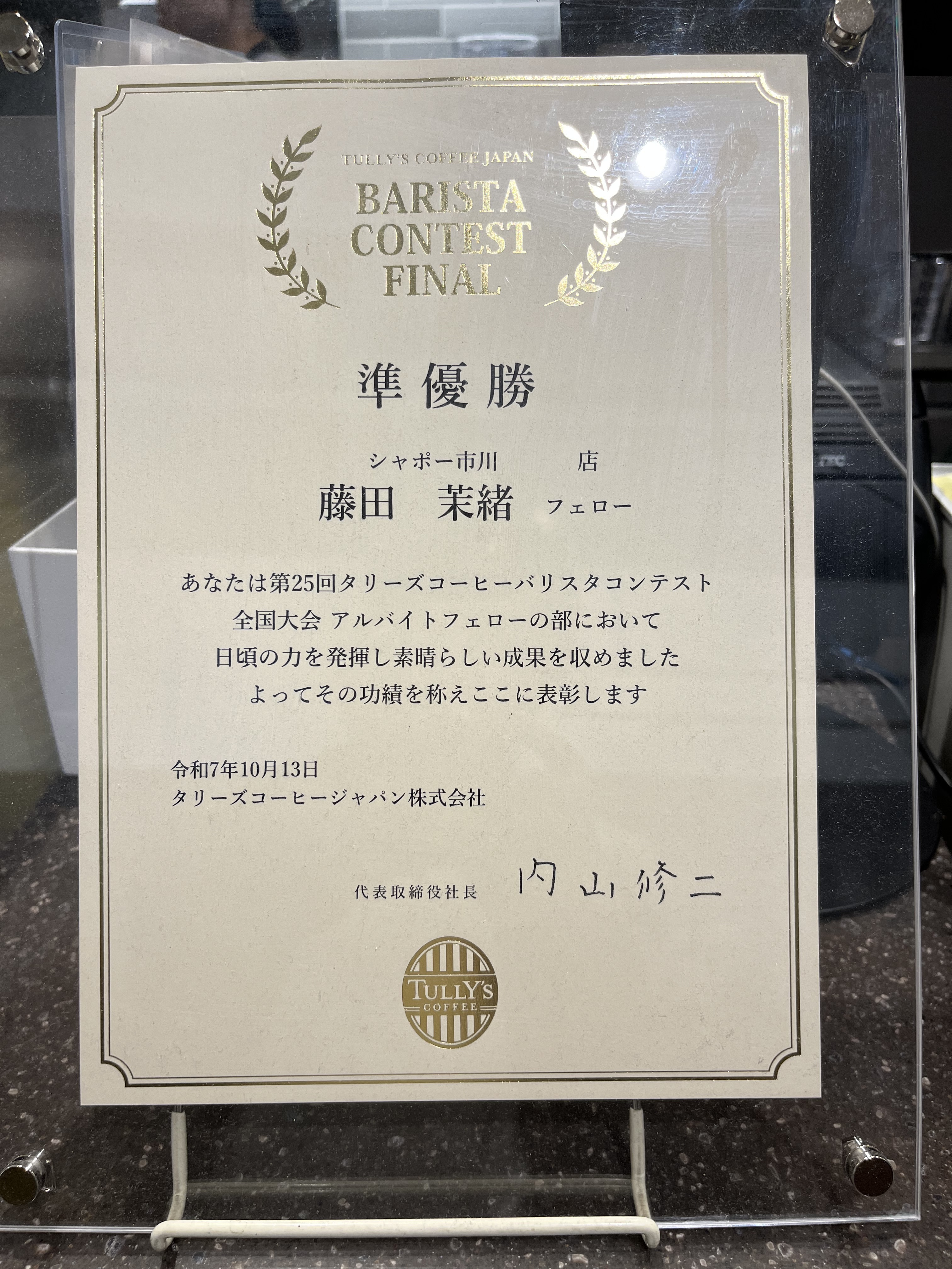 バリスタコンテスト、準優勝のフェローさんにカプチーノ作っていただきたいです!
