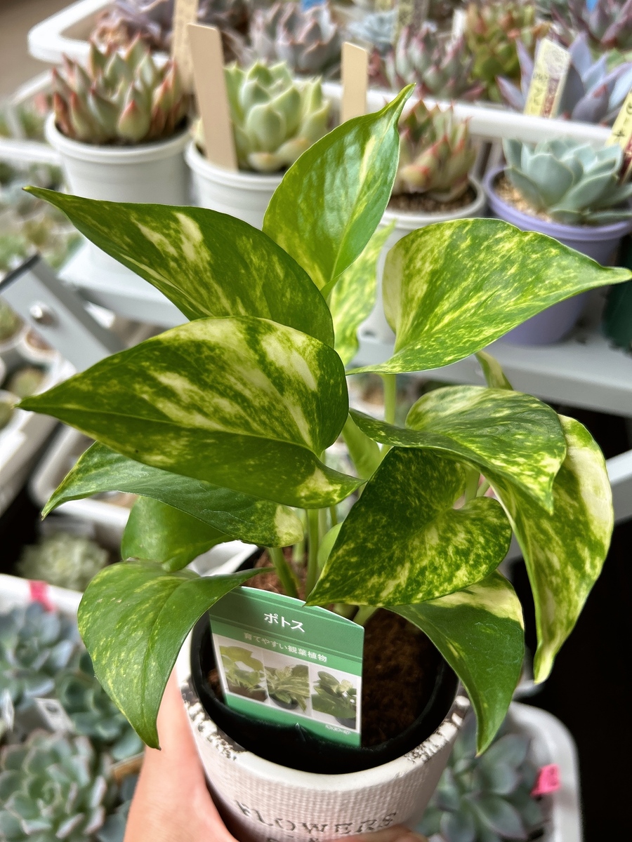 いろいろな葉っぱがあったけど、斑入りの綺麗な葉っぱのポトスをお迎え。